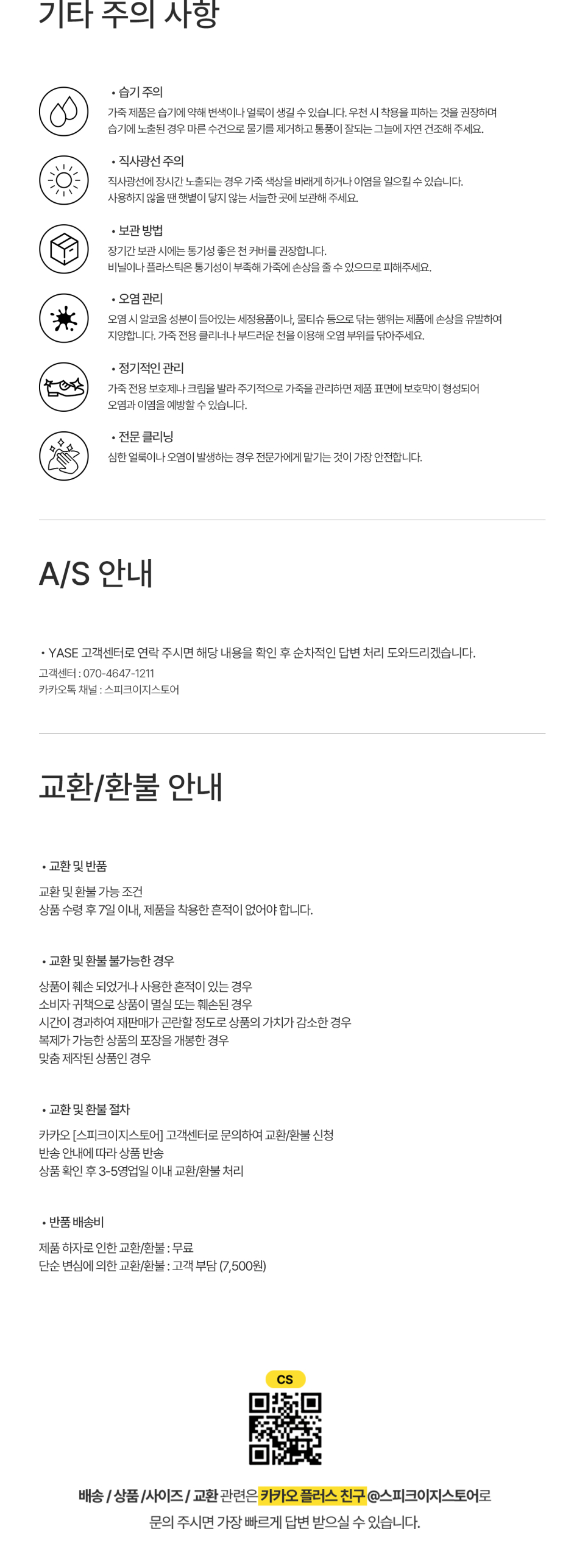 - 천연 가죽 특성상 개체별 색감의 차이, 고유 주름 및 스크래치가 있을 수 있으며, 이염이 발생할 수 있습니다.