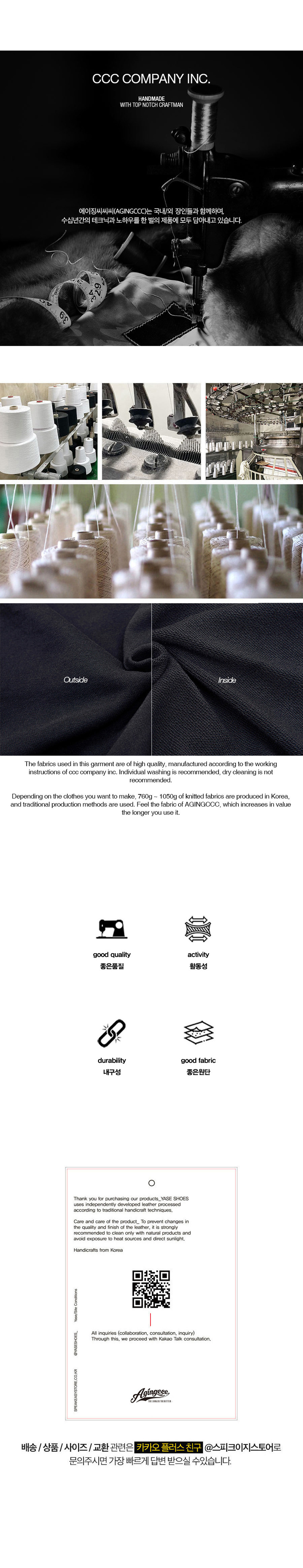 PROCESS : sanforizing(세탁시 변형 최소화), Stone Washing