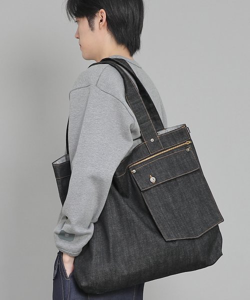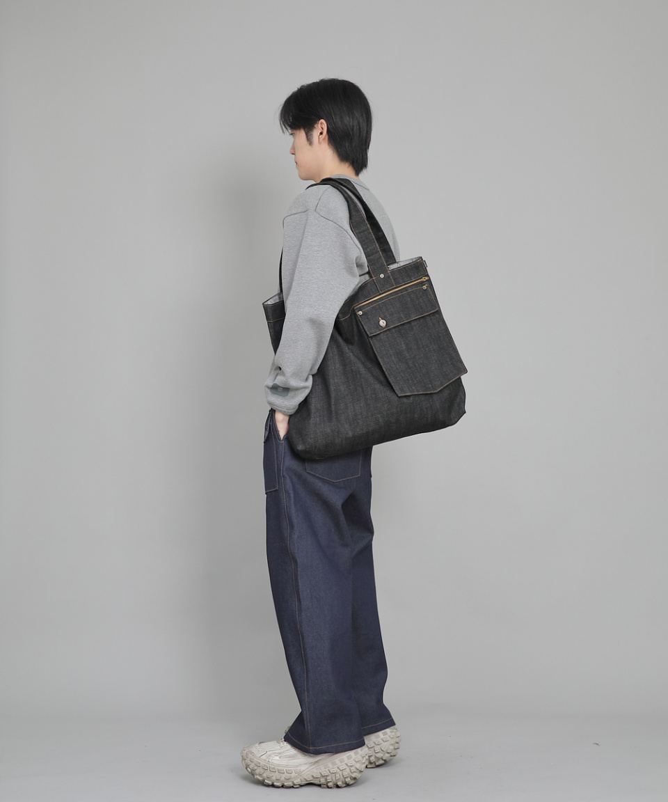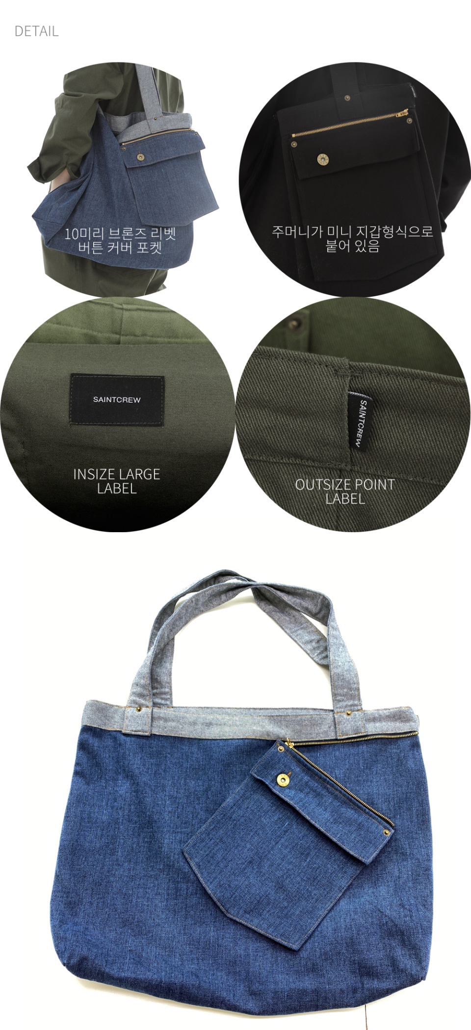 지퍼 포켓 빅사이즈 FZP-107 에코백 데님블랙