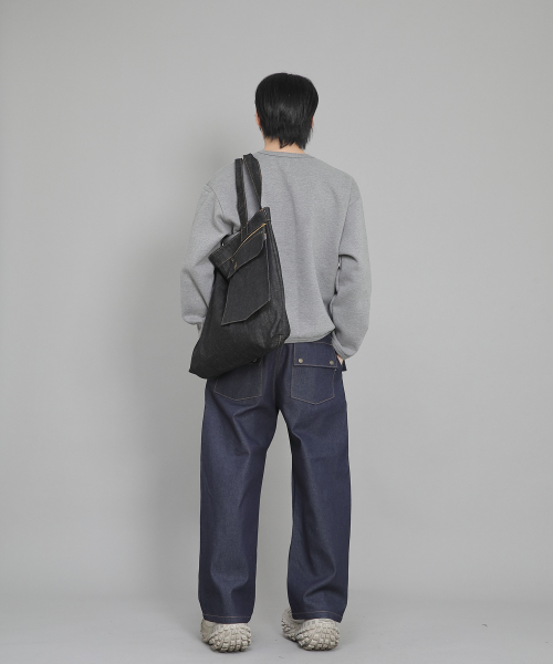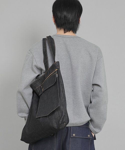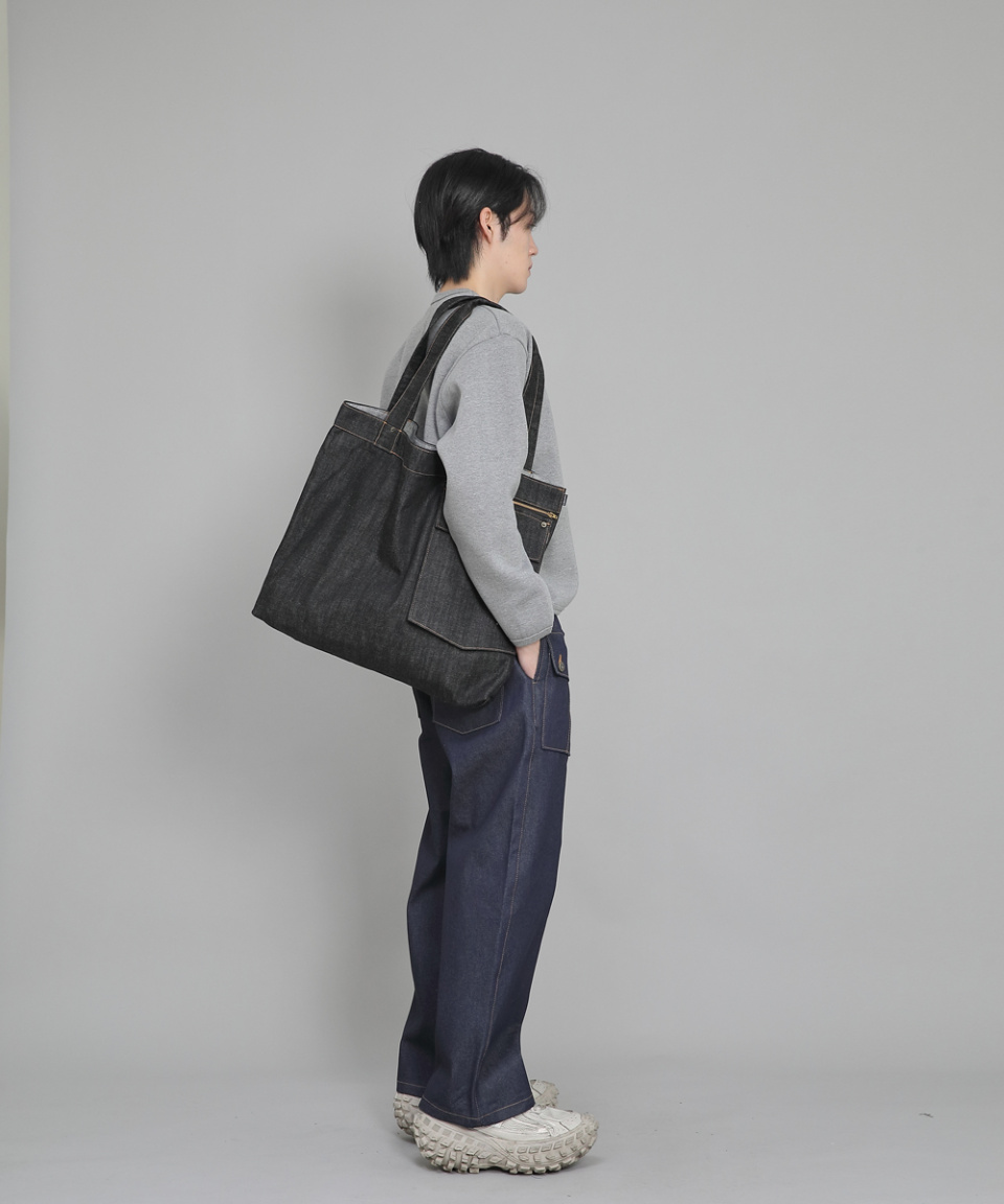 ZIPPER POCKET BIG SIZE FZP-107 SHOULDER BAG DENIM BLACK
