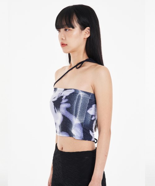 * 노이즈가 어울어진 ASSAY 오리지널 프린트 플라워 패턴 튜브탑입니다.