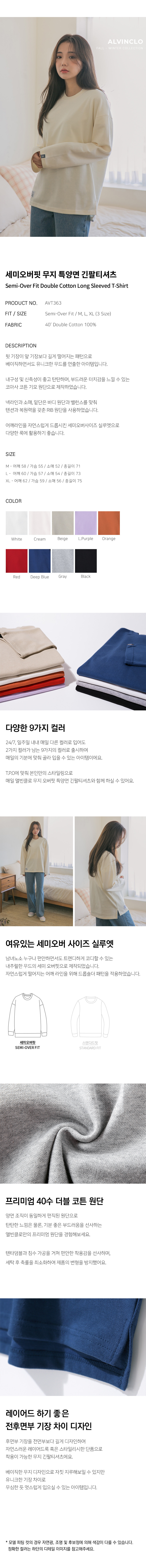 [2PACK] 더블코튼 무지 오버핏 긴팔티셔츠 AVT363 (9 COLOR)