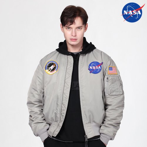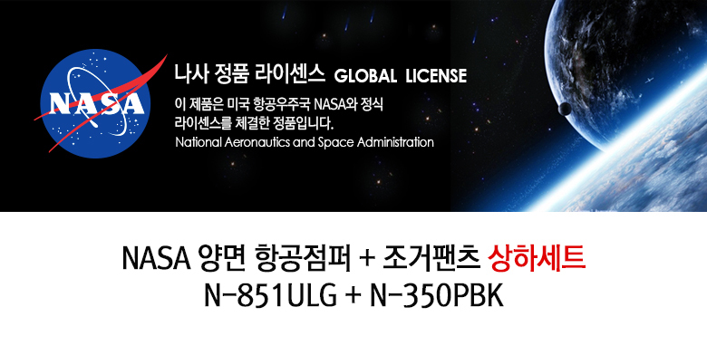 NASA 나사 남녀공용 양면 항공패딩점퍼+면 조거팬츠 상하세트 [라이트그레이+블랙]
