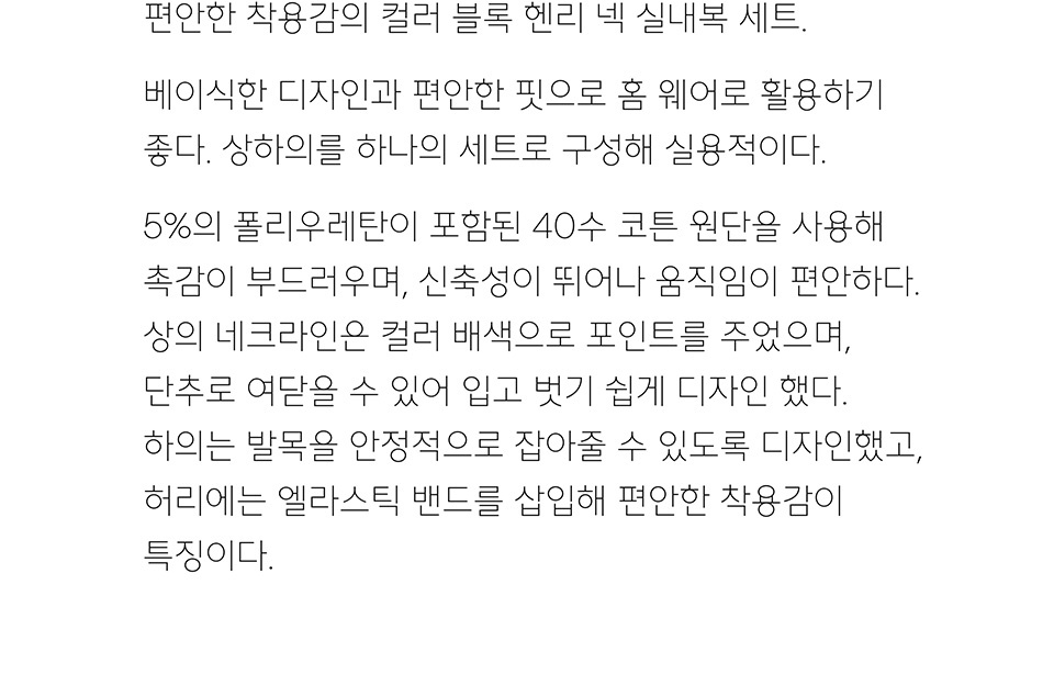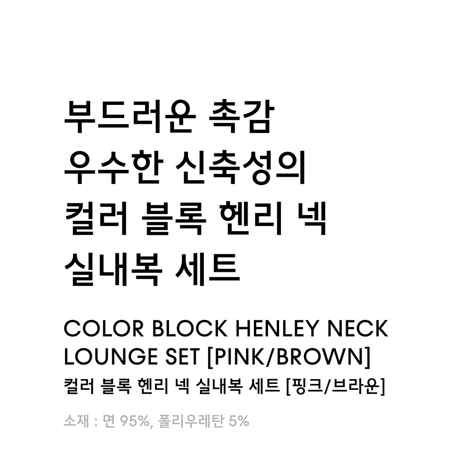 컬러 블록 헨리 넥 실내복 세트 [핑크/브라운]