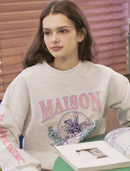 우먼즈 크롭 플레어 트로피컬 유니버시티 헤비테리 맨투맨 애쉬그레이(FCD3TS713W)