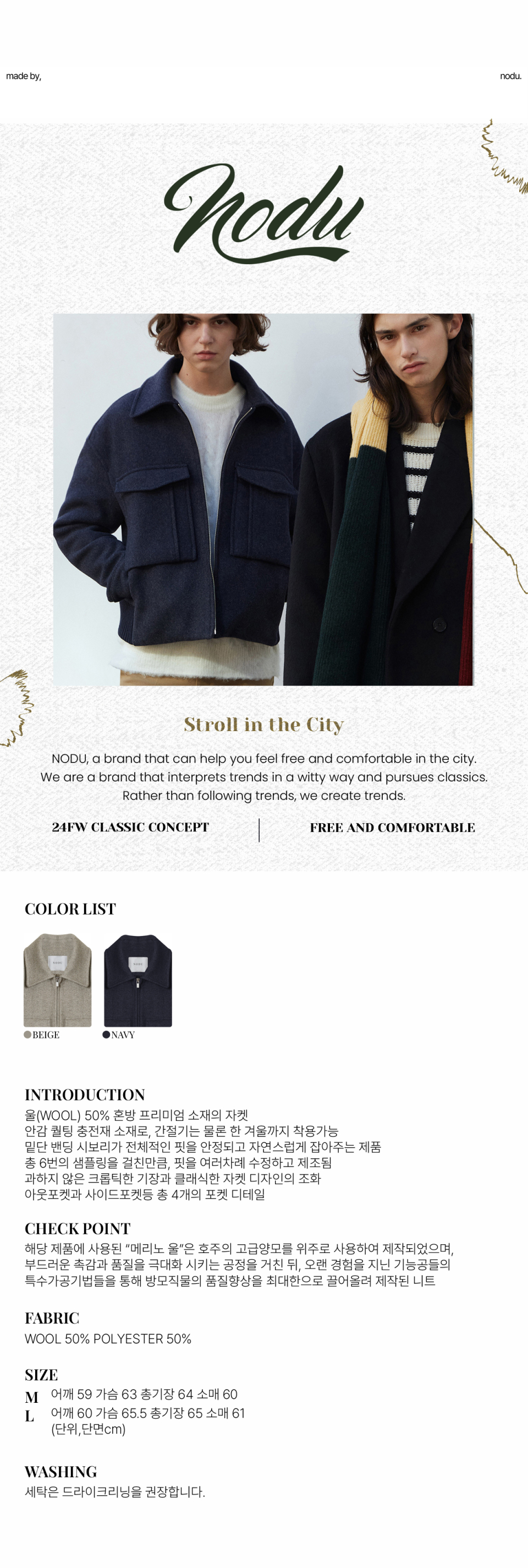 노드유(NODU)는 자유롭고 편안한 무드를 느낄 수 있는 브랜드가 되기 위해 근본적인 클래식을 추구하면서 트렌드를 재치 있게 해석하는 남성 캐주얼&포멀 브랜드입니다.