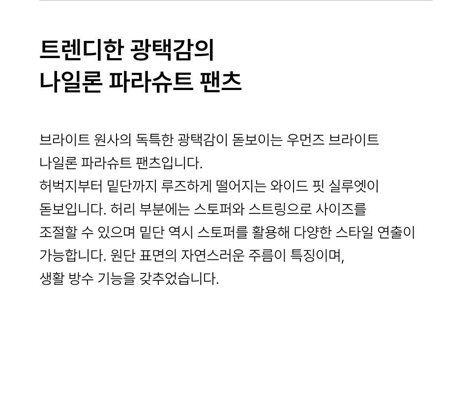우먼즈 브라이트 나일론 파라슈트 팬츠 [핑크]