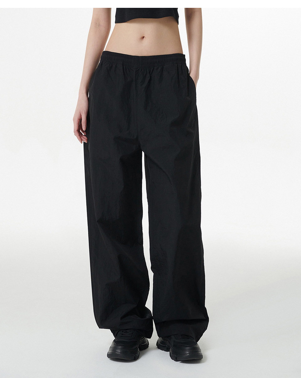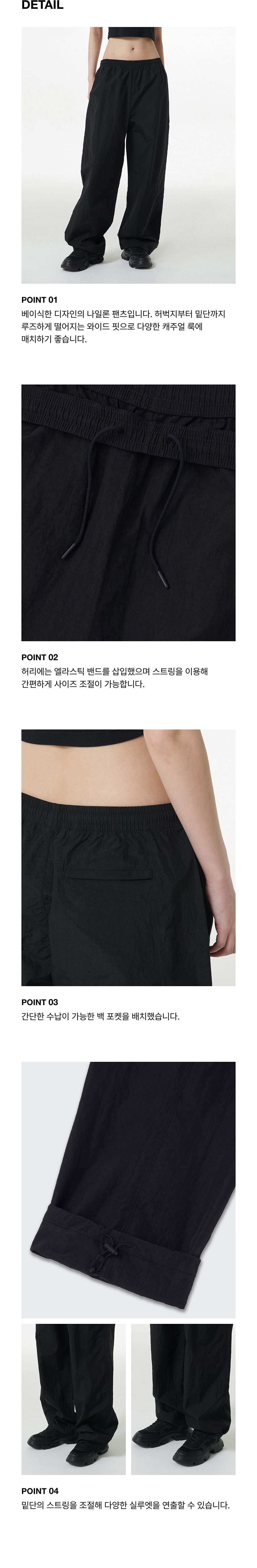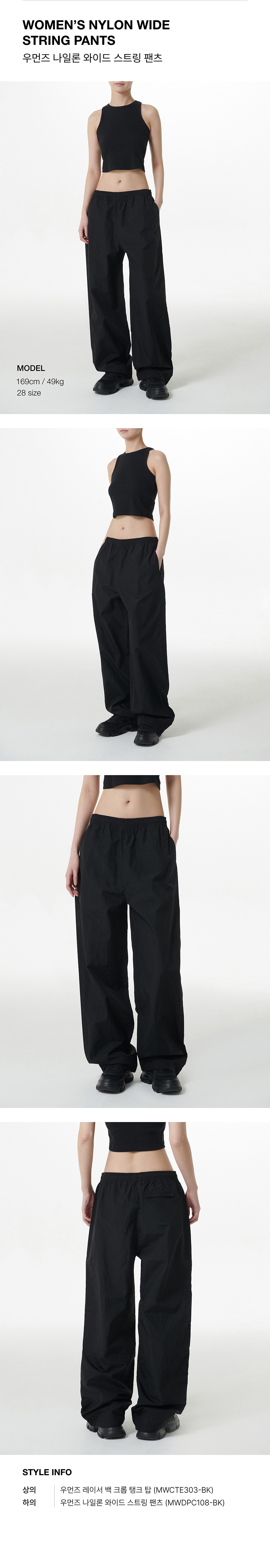 우먼즈 나일론 와이드 스트링 팬츠 [블랙]