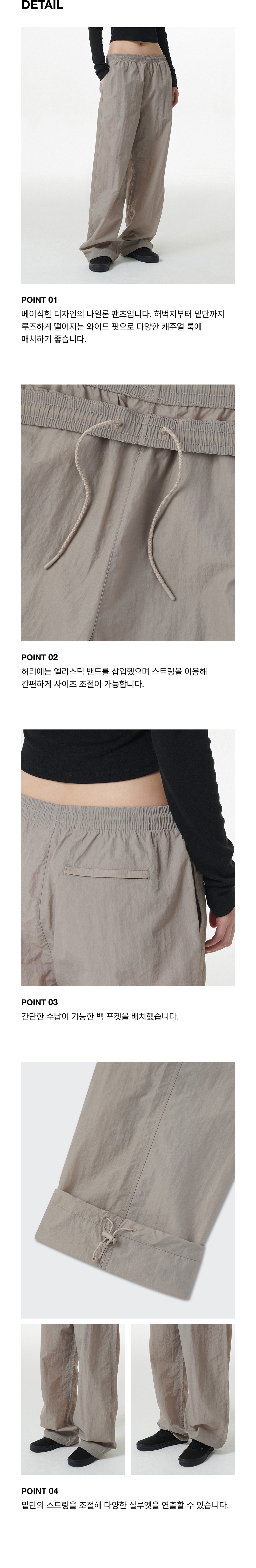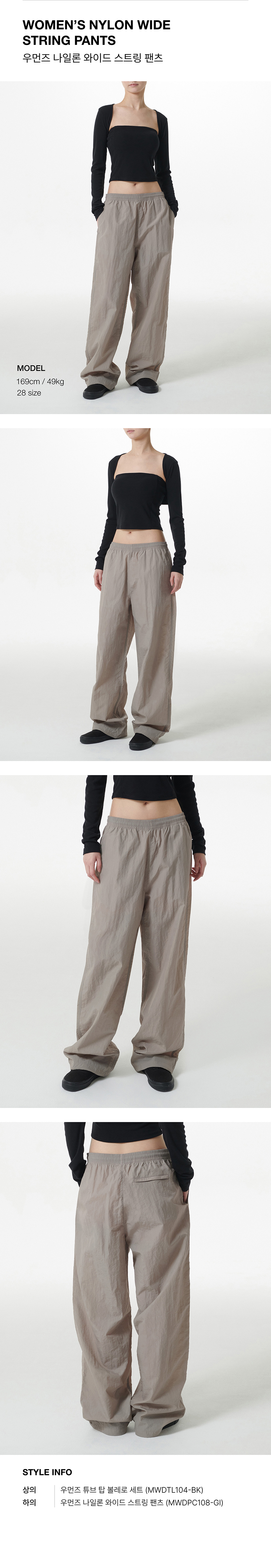 우먼즈 나일론 와이드 스트링 팬츠 [그레이쉬 베이지]