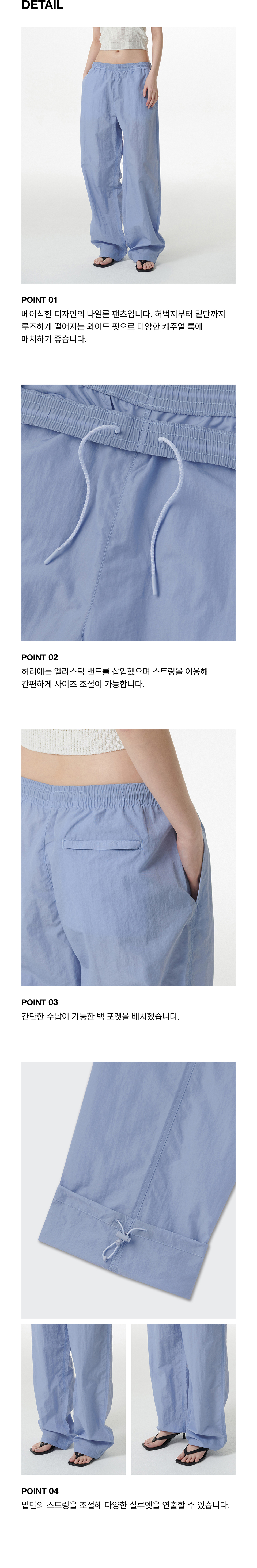 우먼즈 나일론 와이드 스트링 팬츠 [라이트 블루]