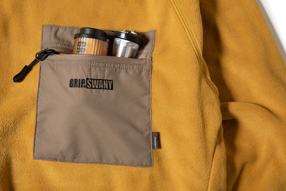 GRIP SWANY의 오리지널 컬러로 염색된 폴라텍 플리스 크루넥 티. 추운 환경에서 따뜻하게 착용가능하며, 가슴에는 나일론 소재의 지퍼 포켓이 달려 있어 소지품 등을 보관할 수 있습니다. 캠핑이나 하이킹 등 다양한 아웃도어 활동에 적합하며 일상적으로도 착용 가능한 디자인입니다.