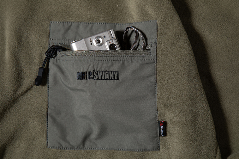 GRIP SWANY의 오리지널 컬러로 염색된 폴라텍 플리스 크루넥 티. 추운 환경에서 따뜻하게 착용가능하며, 가슴에는 나일론 소재의 지퍼 포켓이 달려 있어 소지품 등을 보관할 수 있습니다. 캠핑이나 하이킹 등 다양한 아웃도어 활동에 적합하며 일상적으로도 착용 가능한 디자인입니다.