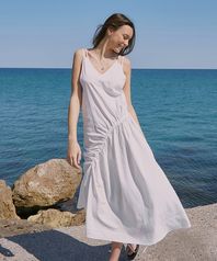 셔링 브이넥 슬리브리스 드레스 - 아이보리