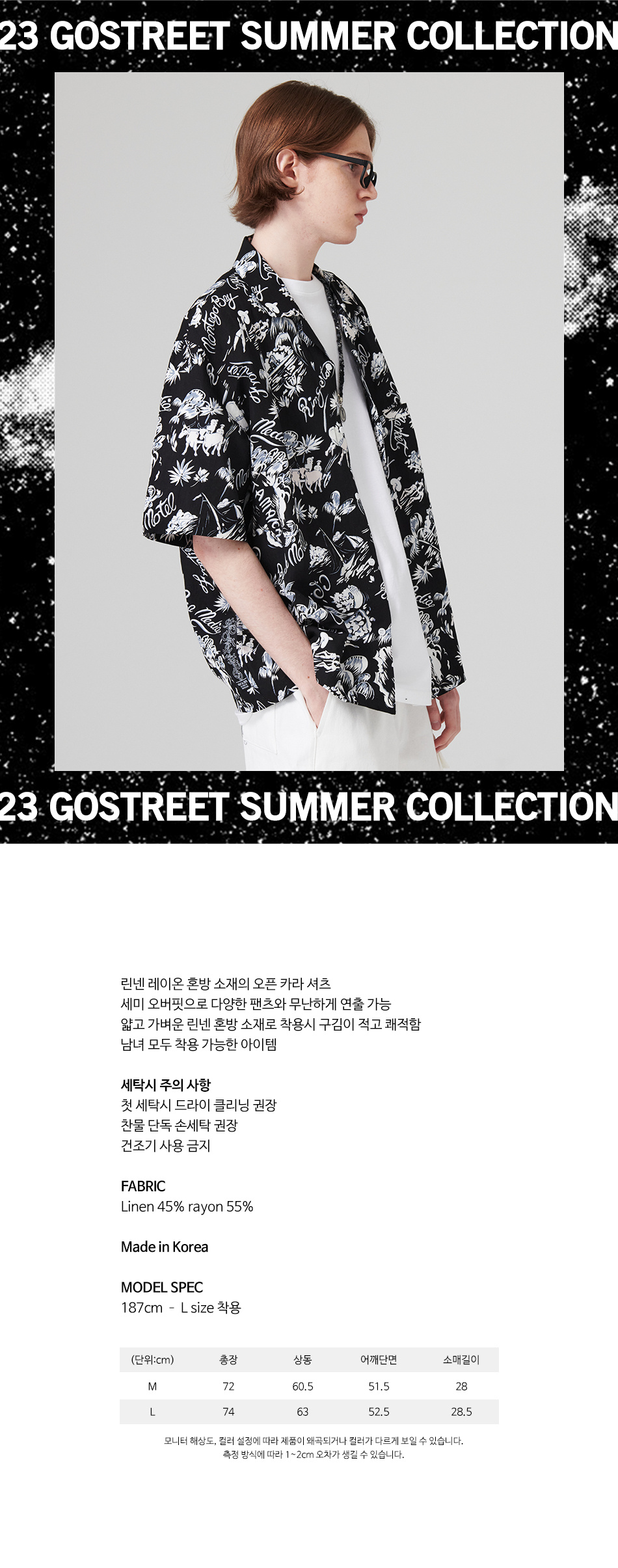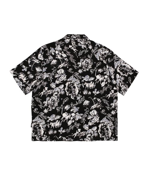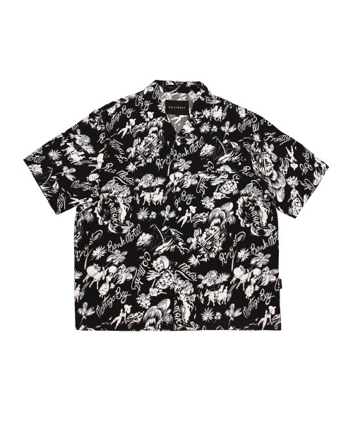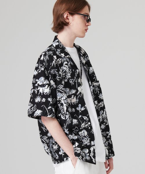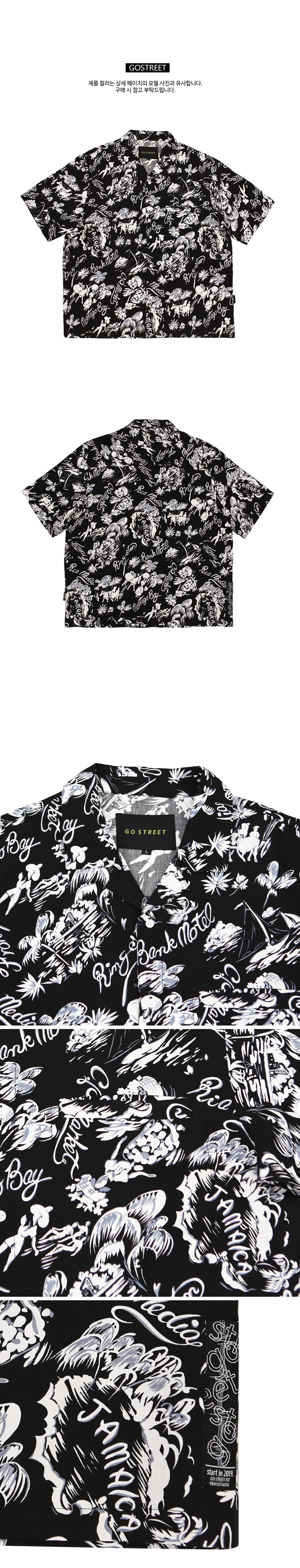 오픈 카라 하와이안 셔츠 블랙