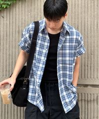 시어서커 썸머 체크 반팔 셔츠 [블루]