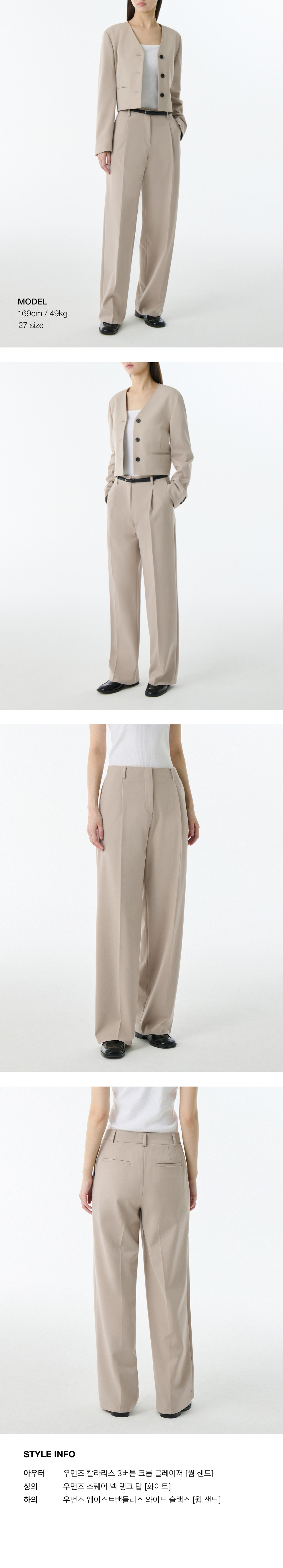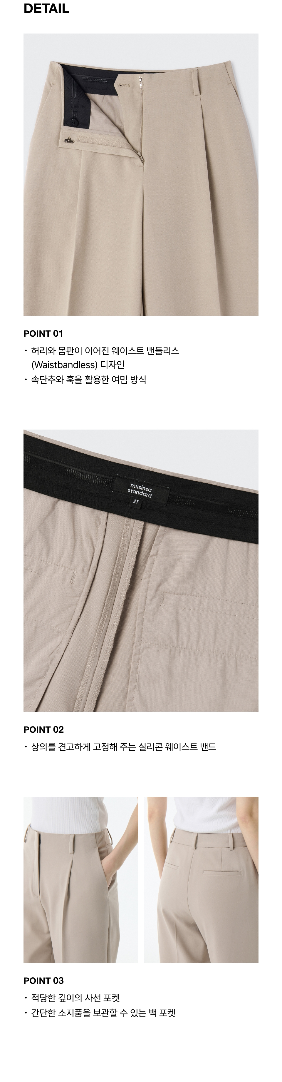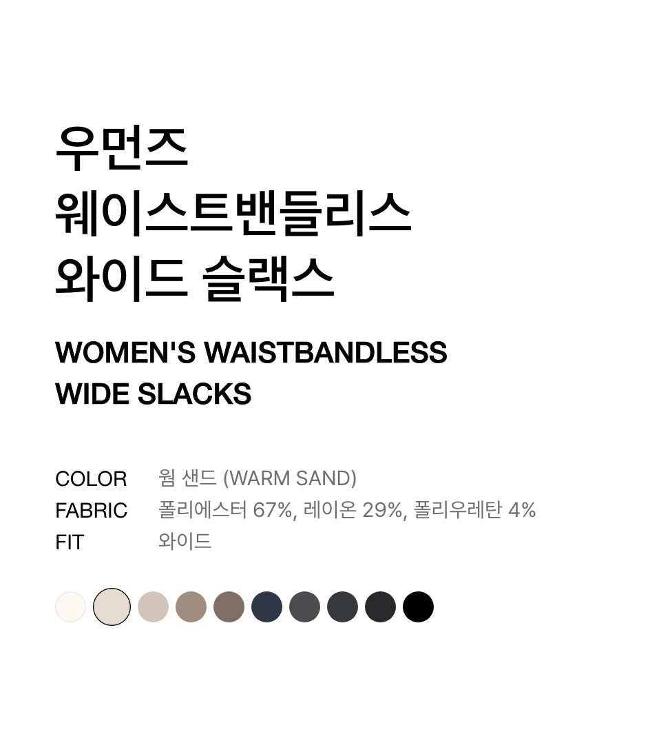 우먼즈 웨이스트밴들리스 와이드 슬랙스 [웜 샌드]
