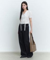 우먼즈 퍼프 슬리브 타이 블라우스 [화이트]
