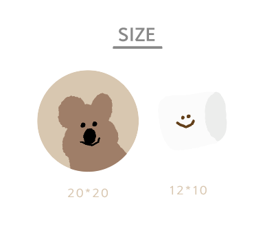 쿼카얼굴은 원형에 상반신만, 마쉬는 옆에 좀 더 작은 사이즈로 장식처럼 달려있습니다.