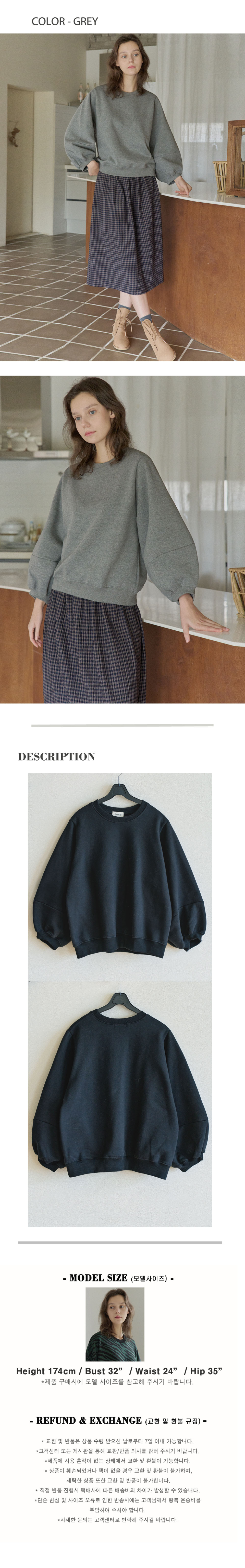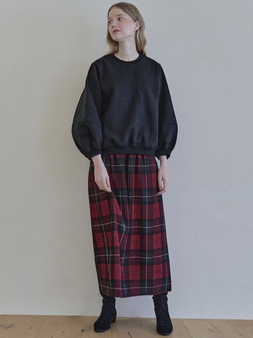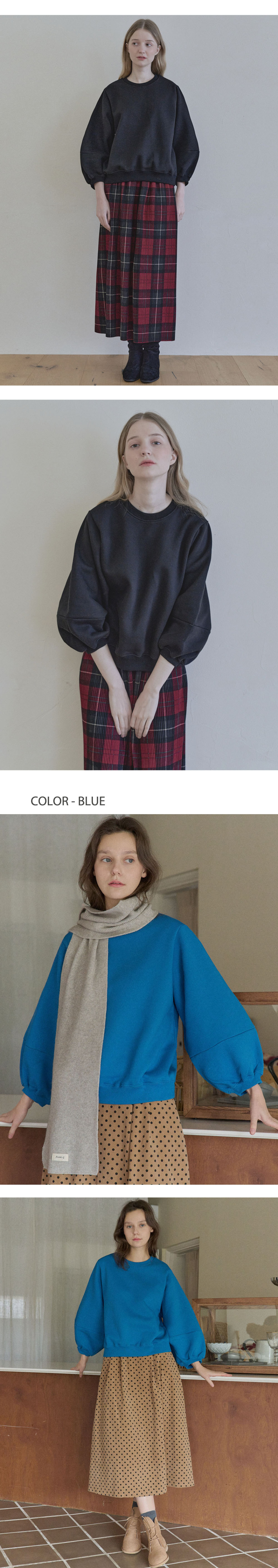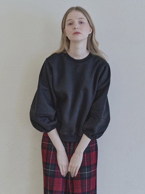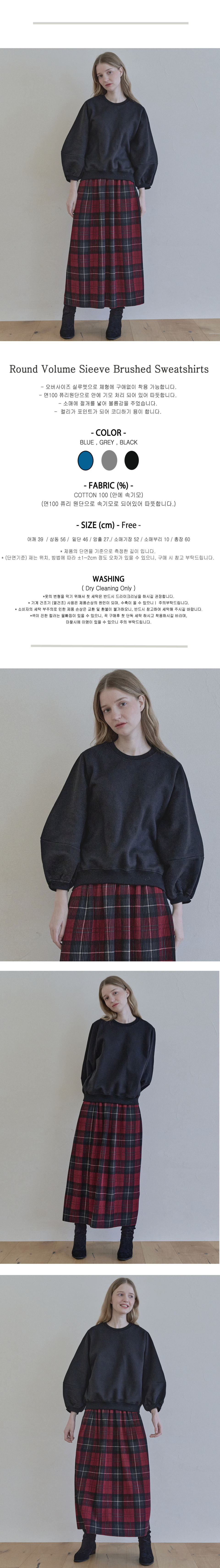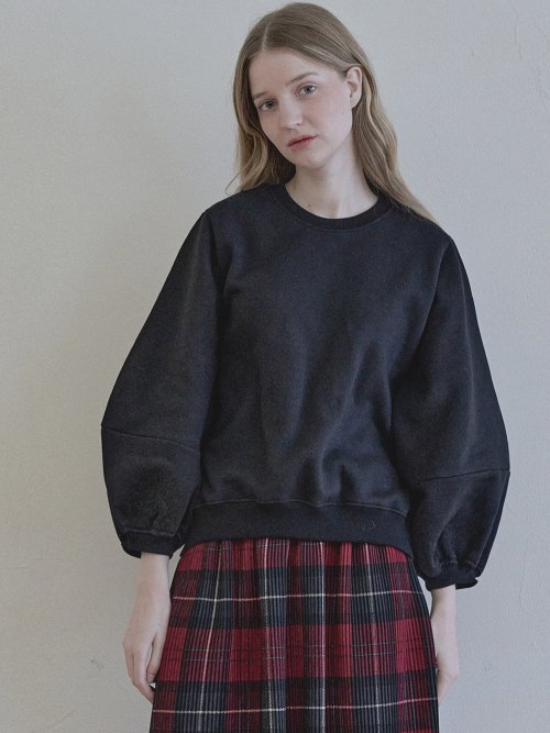 Round Volume Sleeve Brushed Sweatshirts - BLACK (기모)