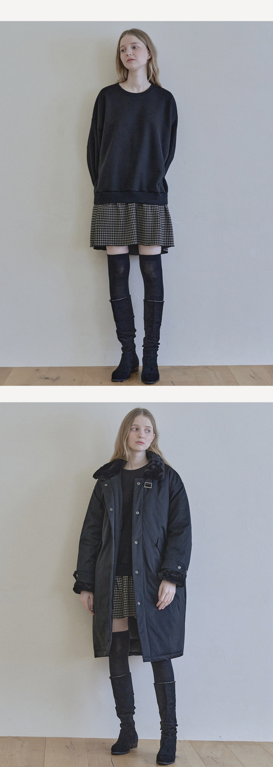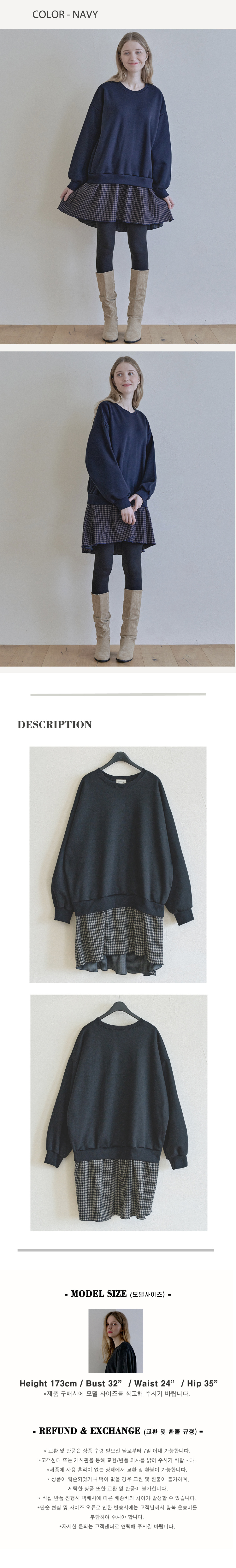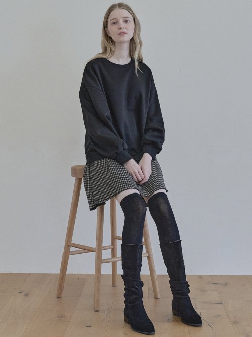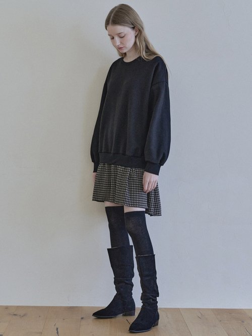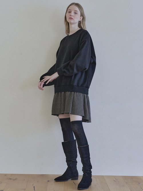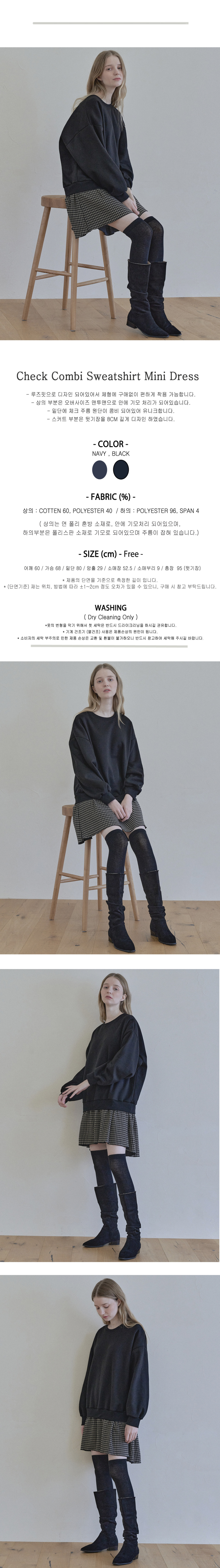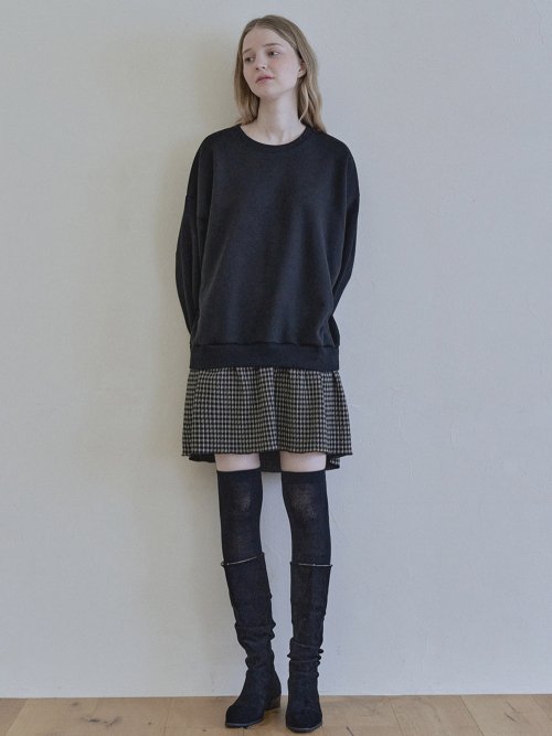 Check Combi Sweatshirt Mini Dress - BLACK(기모)