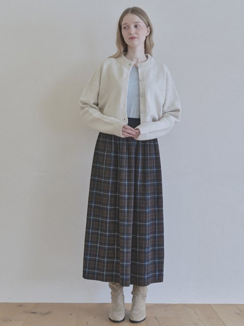 Tartan Check Pleated Maxi Skirt - BROWN