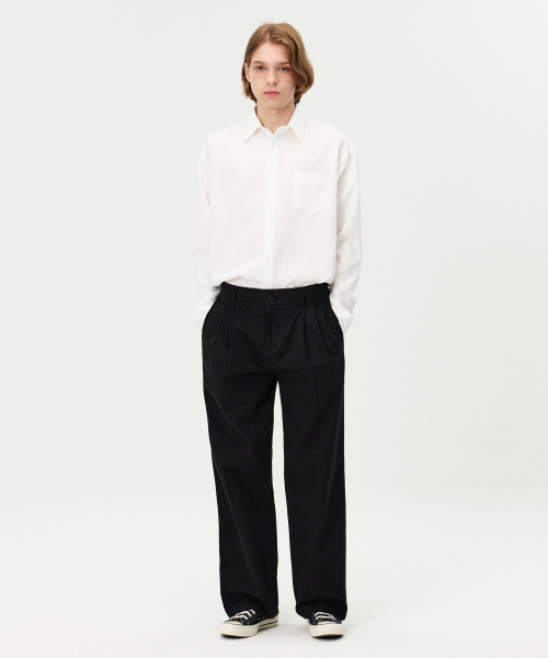 원턱 세미 와이드 히든 밴딩 슬랙스 [블랙]