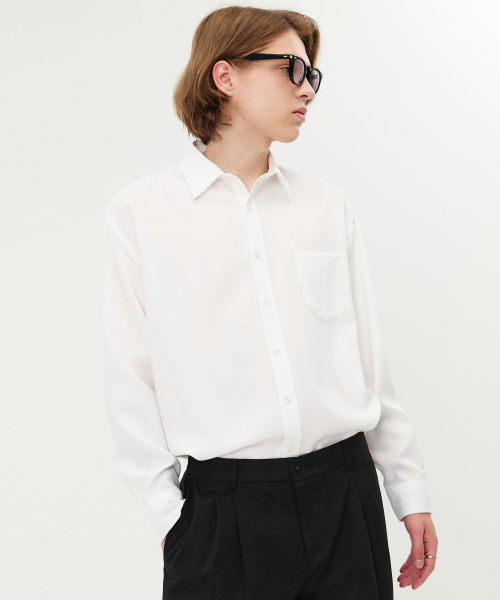 솔리드 링클프리 루즈핏 무지 셔츠 화이트