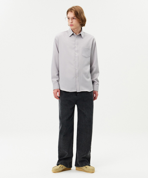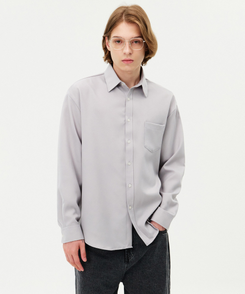 솔리드 링클프리 루즈핏 무지 셔츠 라이트그레이