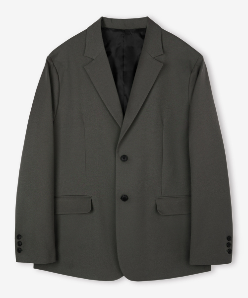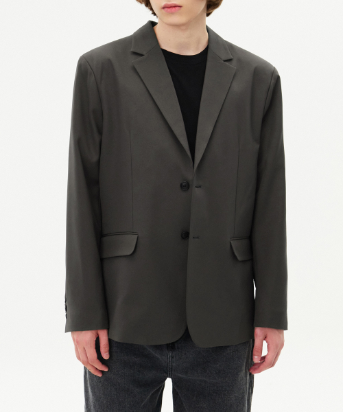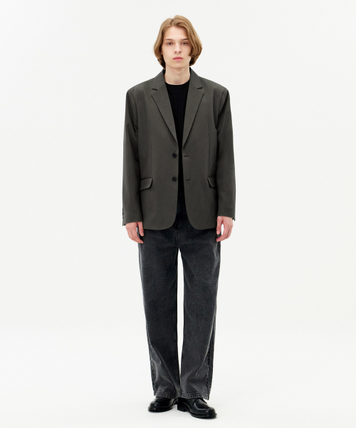 에센셜 오버핏 투 버튼 싱글 블레이저 다크그레이