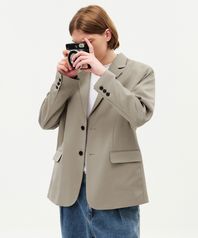 에센셜 오버핏 투 버튼 싱글 블레이저 베이지