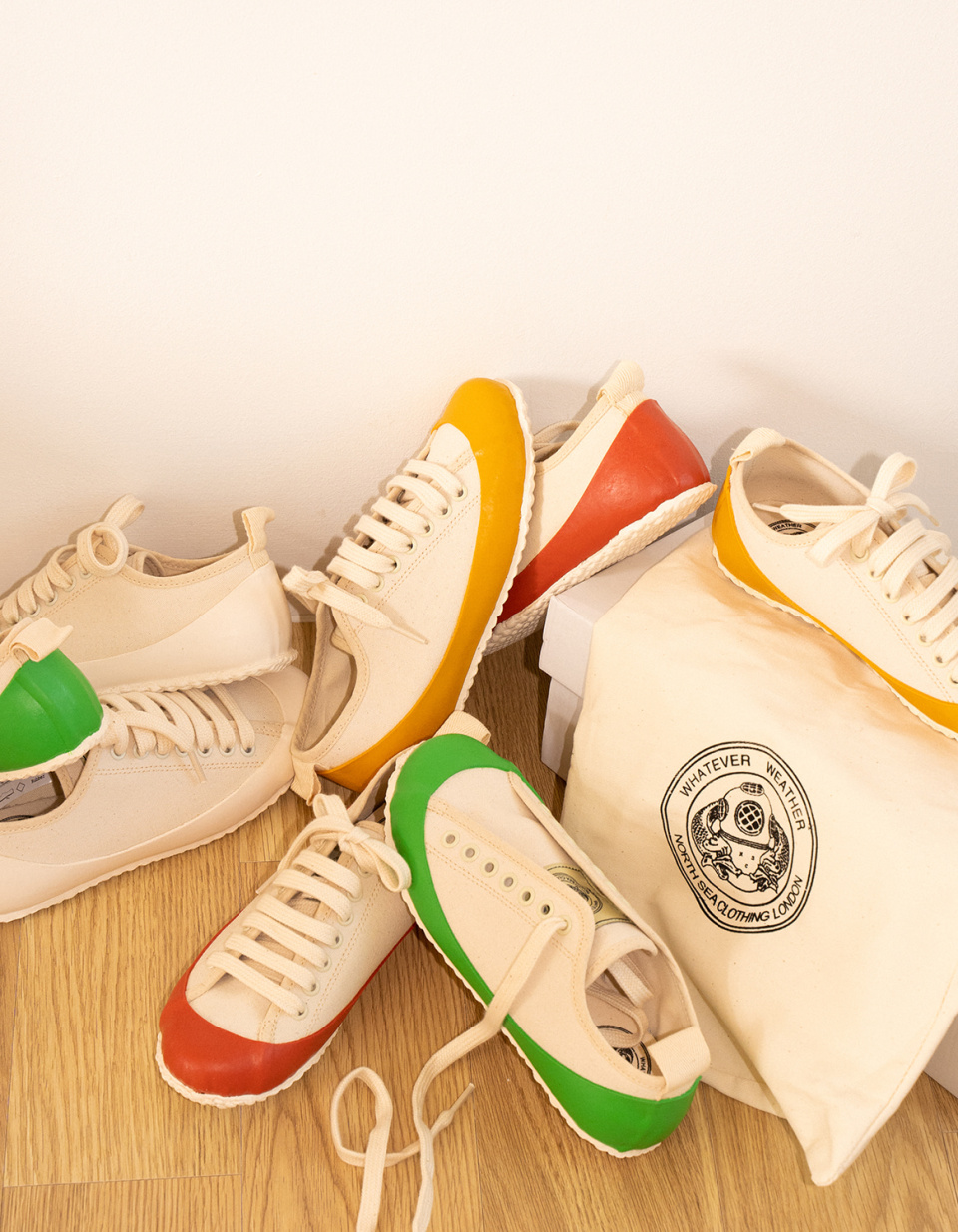 노스씨클로딩의 베스트셀러 제품인 마린 타입 2 레이스업 데크 슈즈는 해군 활동화에 영감을 받아 제작되었습니다. 내구성이 뛰어난 100% 면 캔버스 측면에는 가황처리된 고무 Vulcanized Rubber를 사용하여 비오는 날에도 착용이 가능하여 비가 잦은 영국에서 최적의 슈즈로 손꼽히고 있습니다.Vulcanized Rubber는 천연고무에 유황을 섞어 가열하여 만든 고무소재로 탄성이 높고 잘 노화되지 않는 특성이 있는 소재로 신발의 내구성과 방수력을 높여줍니다.