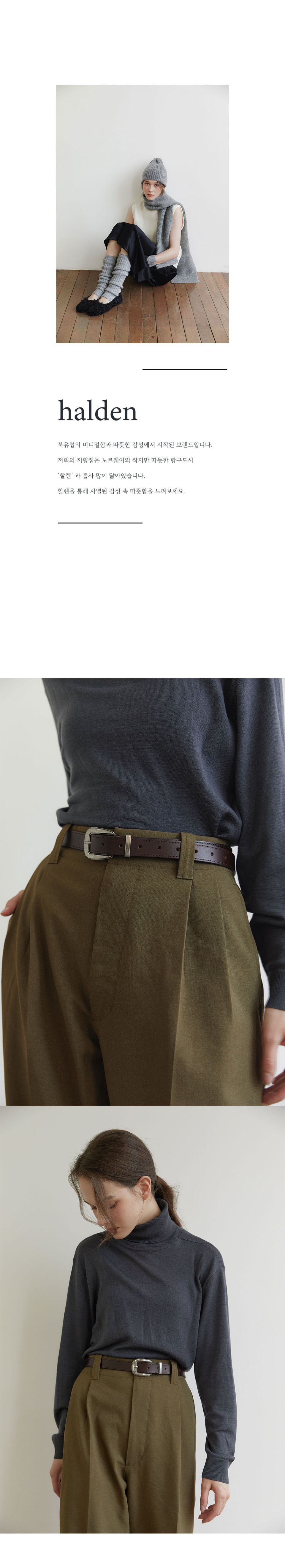 할렌(HALDEN)은 북유럽의 미니멀하고 따뜻한 감성에서 시작된 브랜드입니다. 노르웨이의 작지만 따뜻한 항구도시 '할렌'의 모습을 추구합니다.