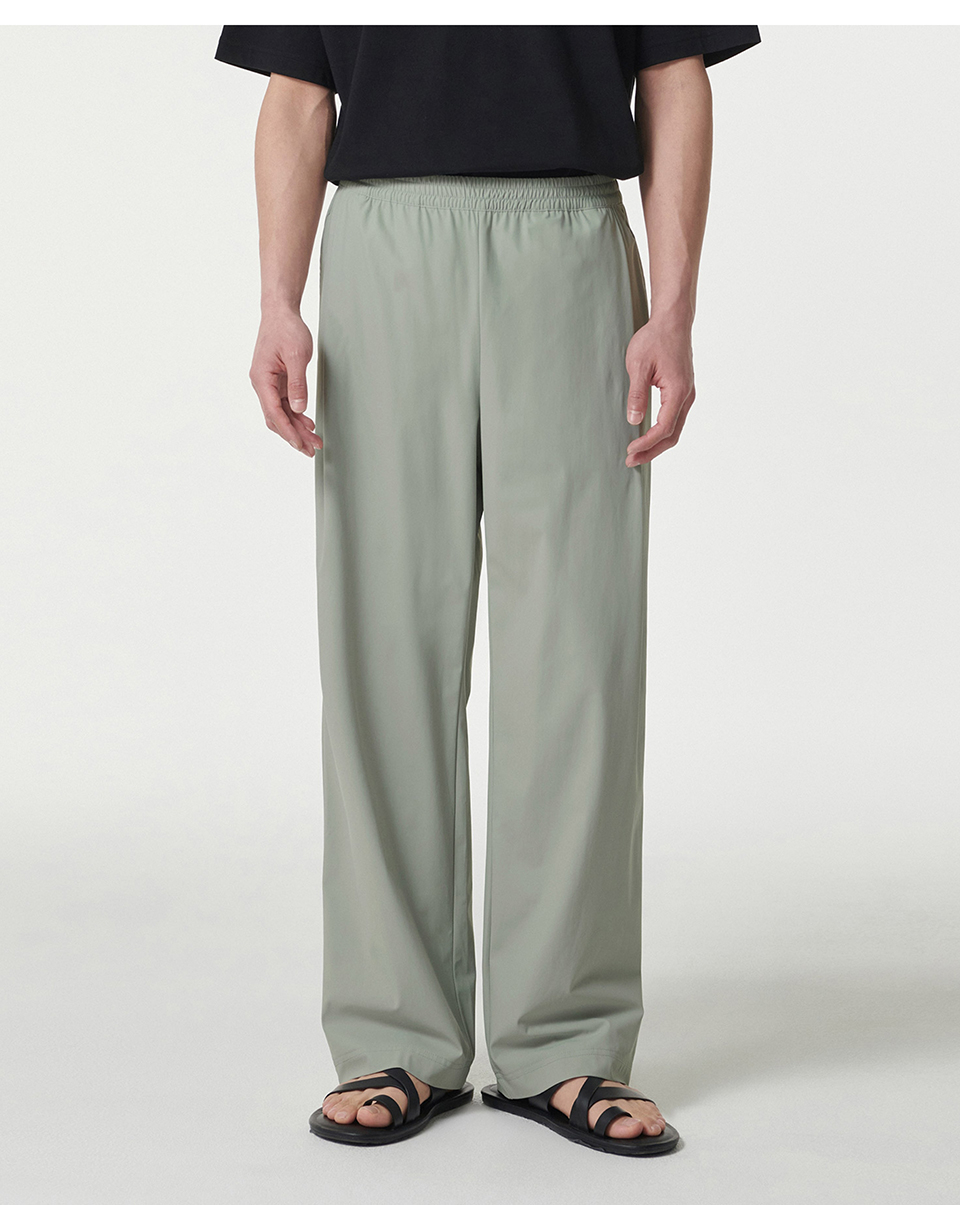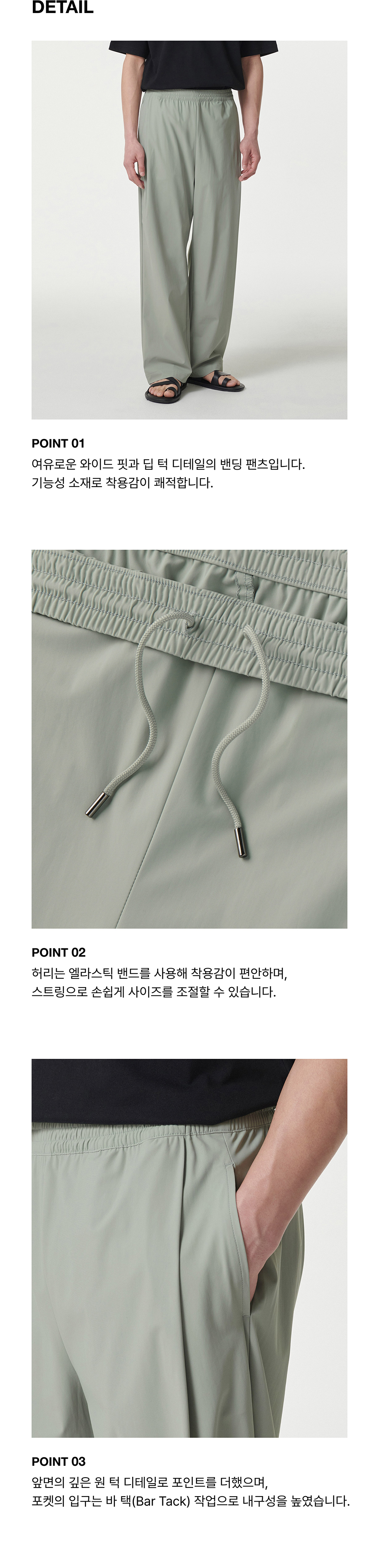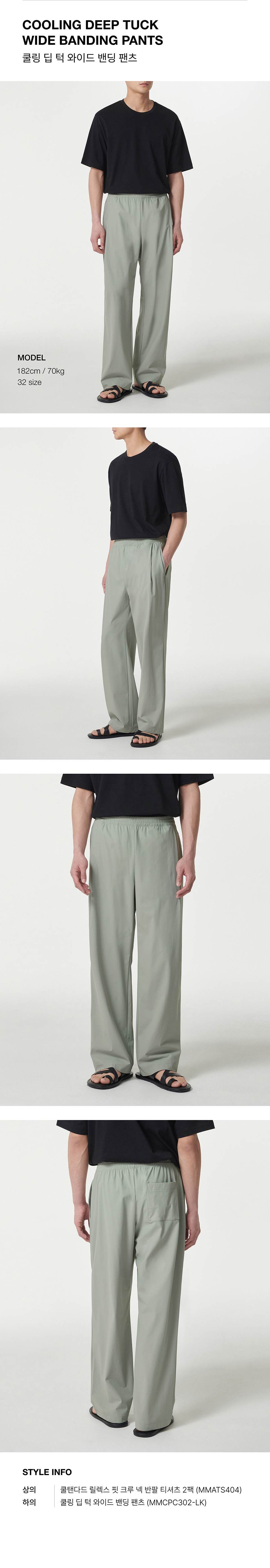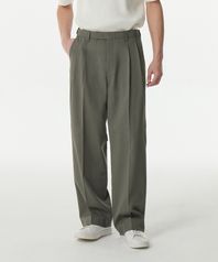 쿨링 딥 턱 와이드 밴딩 팬츠 [라이트 카키]