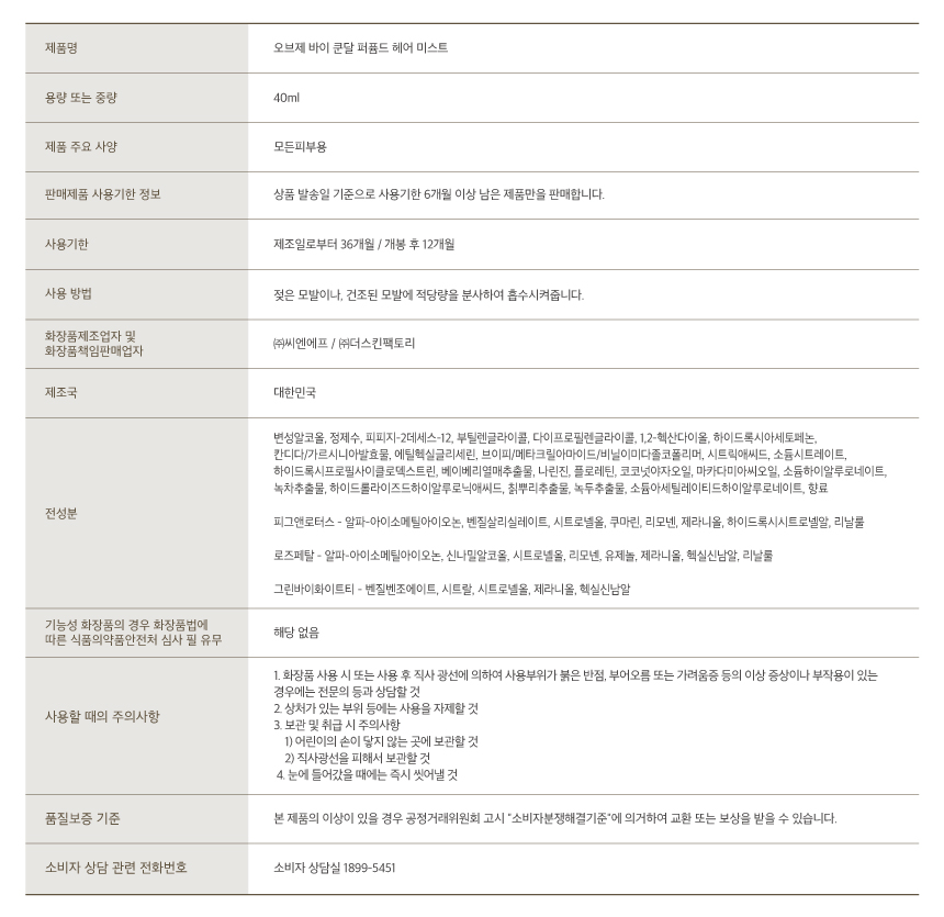 오브제 바이 쿤달 퍼퓸드 헤어미스트 40ml