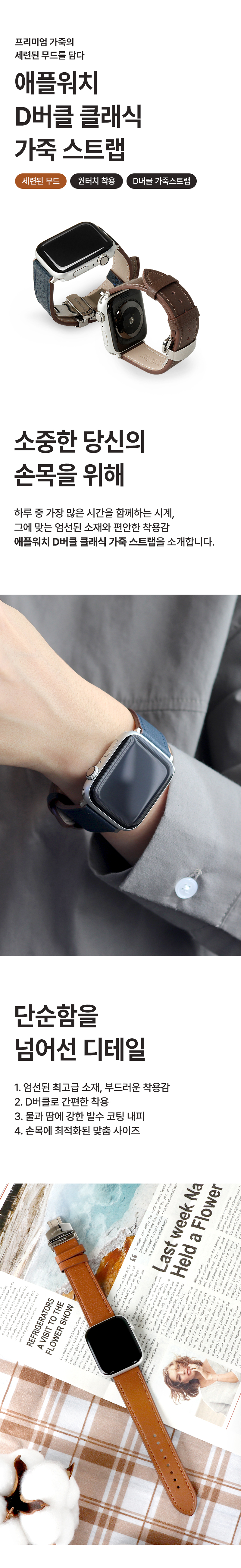 애플워치 D버클 클래식 가죽 스트랩 브라운