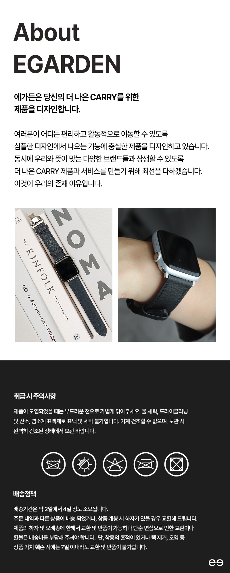 EGARDEN(에가든)은 소중한 것은 아름다워야 한다는 것에서부터 시작합니다. 사람들은 아름다움을 시각적인 화려함으로 대부분 생각합니다. 하지만 에가든에서 말하는 아름다움이란 내가 모든 의지를 가지고 의욕 하지 않을 수 없는 곳에 있다고 생각합니다. 즉, 밖으로 보이는 아름다움이 아닌 내면에서 나오는 아름다움입니다. 에가든은 시각적인 화려함을 추구하지 않을 것입니다. 사람들에게 아주 소중한 것의 내면의 아름다움이 나올 수 있도록 제품을 만들겠습니다.
