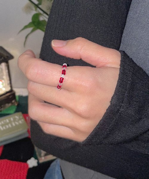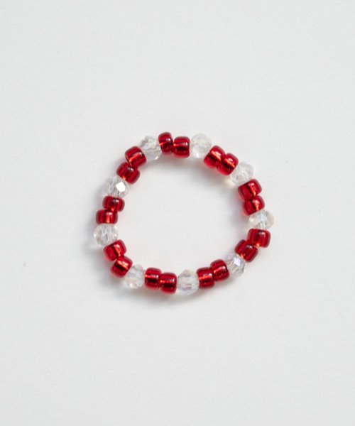 Red bead and crystal ring