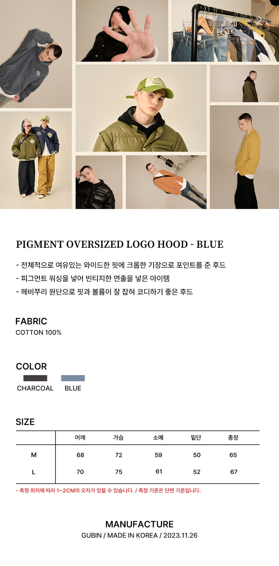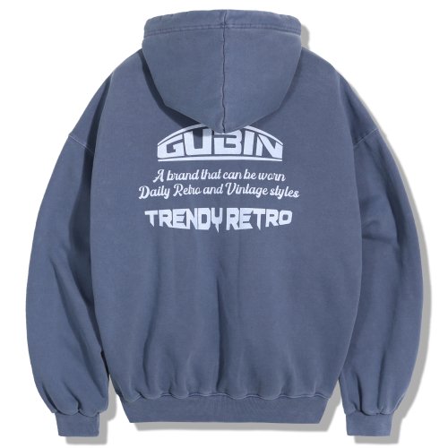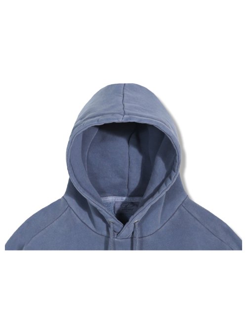 [기모] 피그먼트 오버사이즈 로고 후드 - 블루