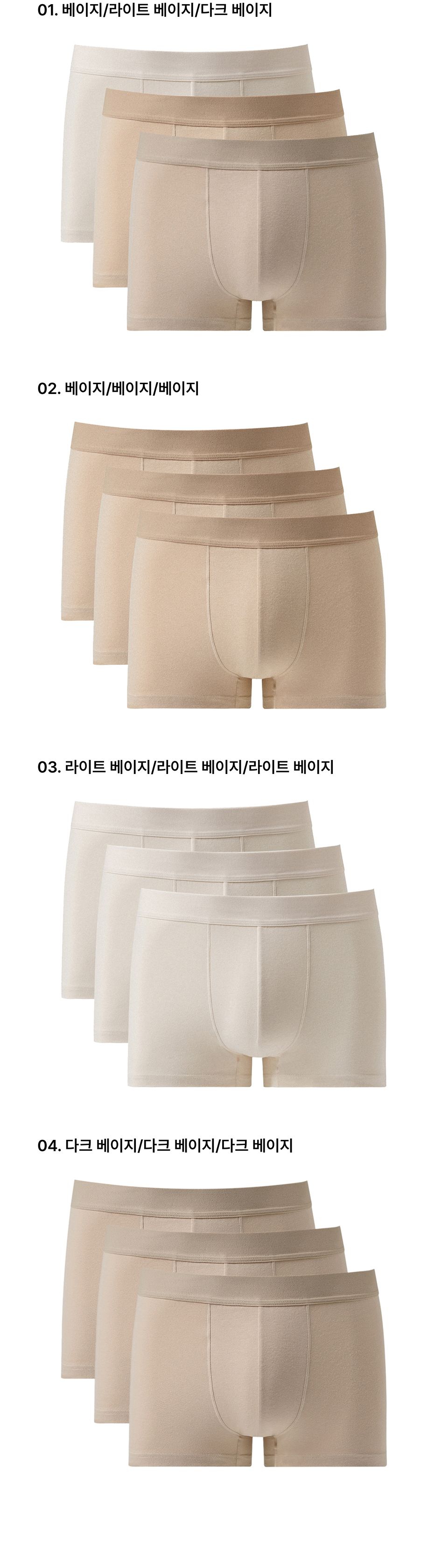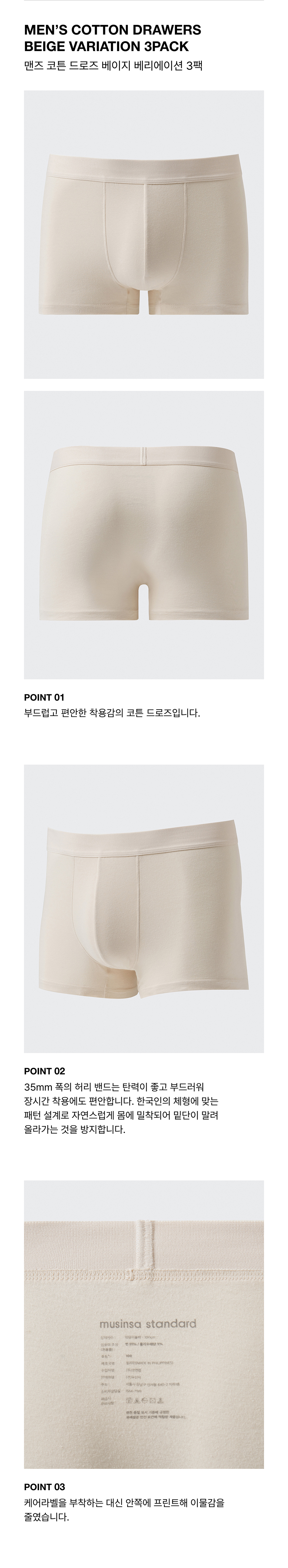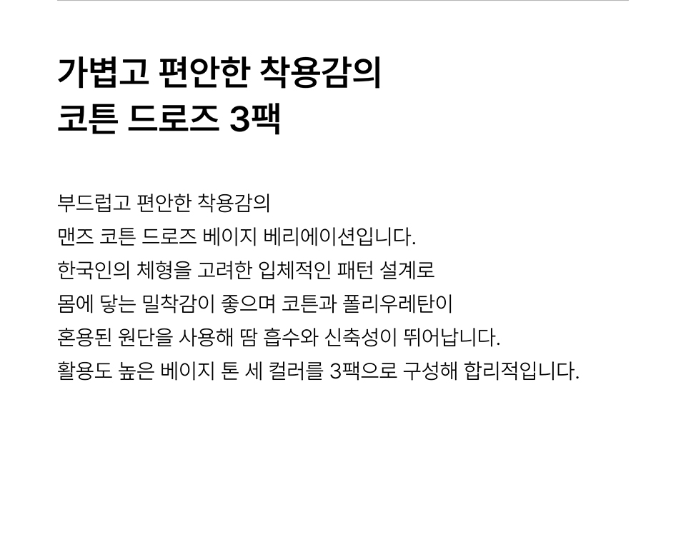 맨즈 코튼 드로즈 베이지 베리에이션 3팩