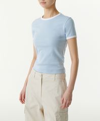 우먼즈 슬림 크루 넥 링거 티셔츠 [스카이 블루/화이트]