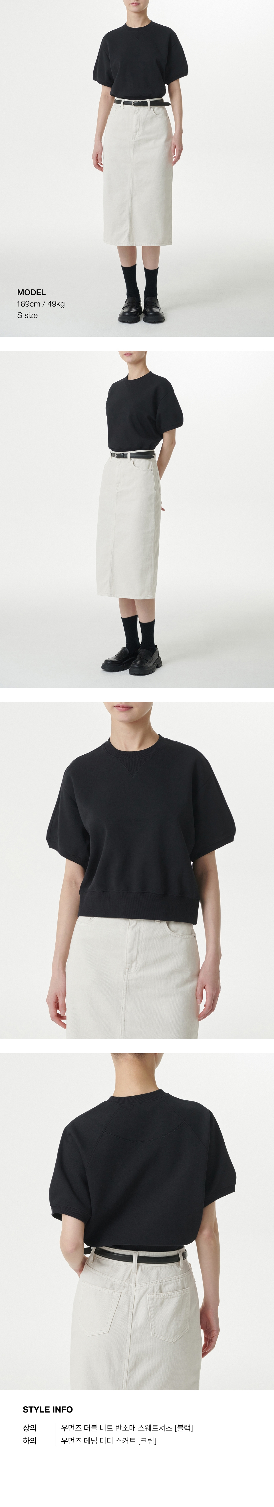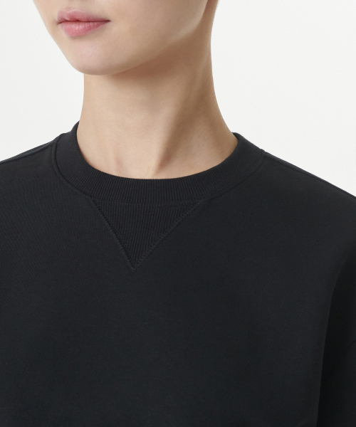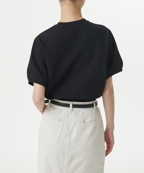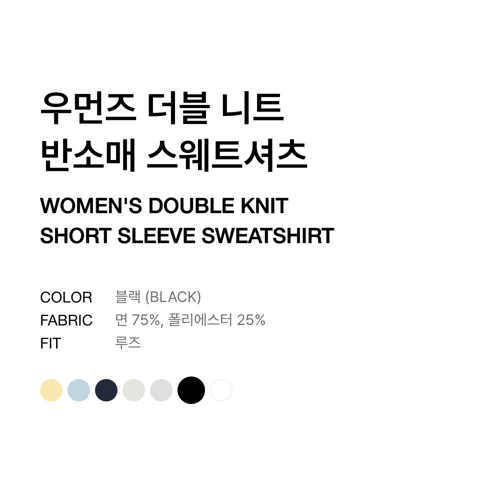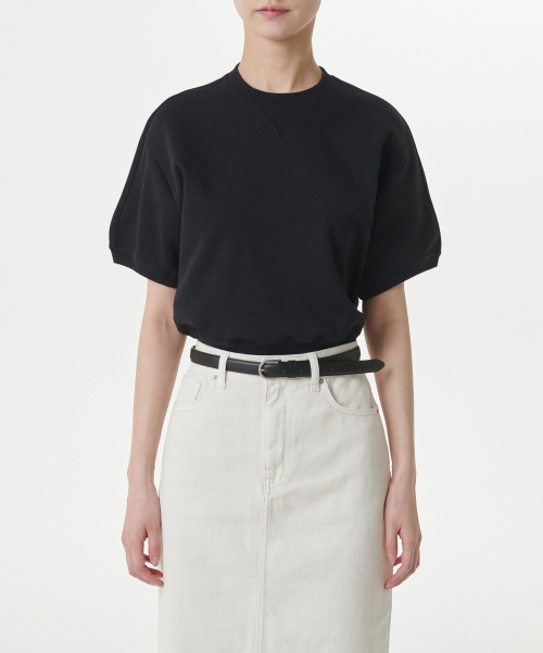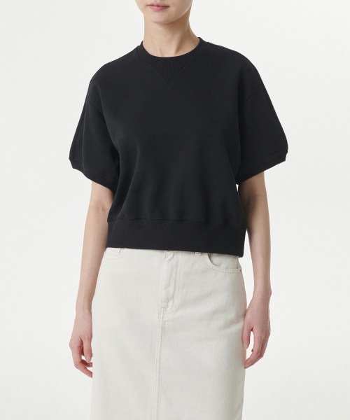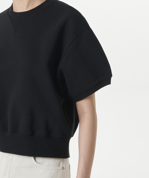 우먼즈 더블 니트 반소매 스웨트셔츠 [블랙]