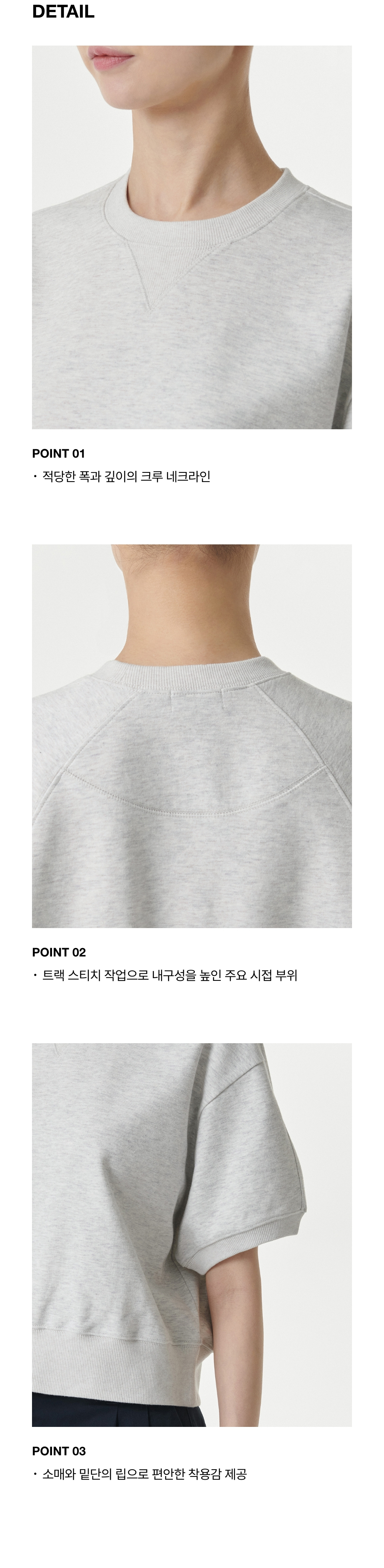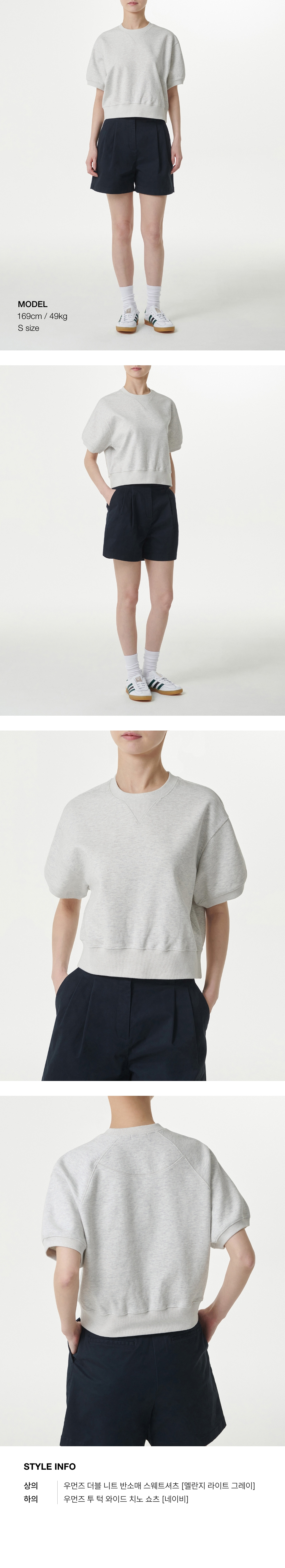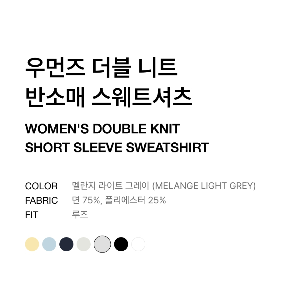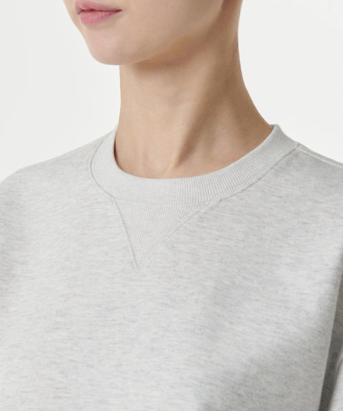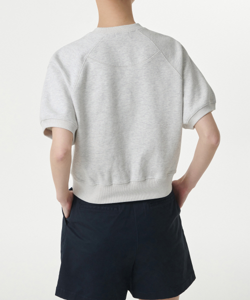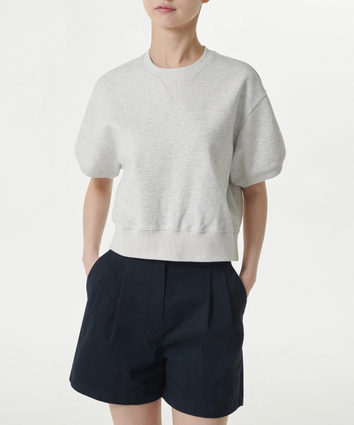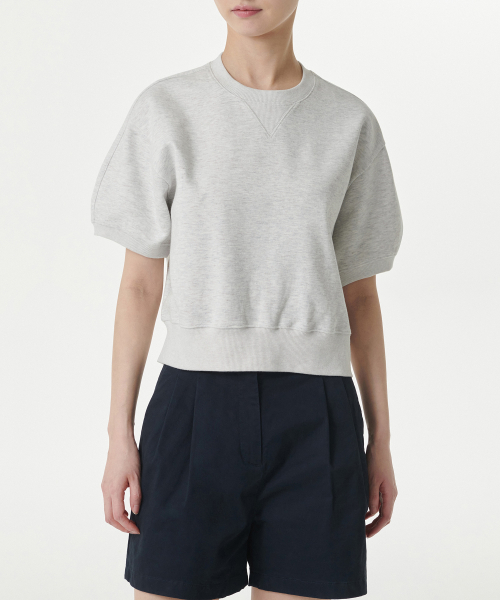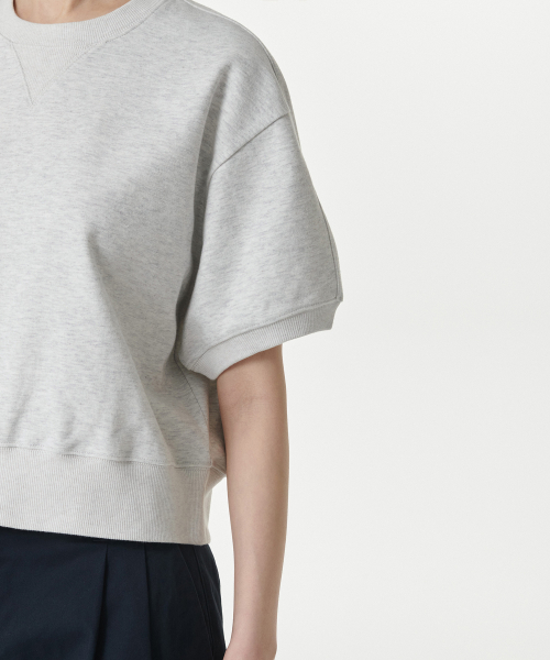 우먼즈 더블 니트 반소매 스웨트셔츠 [멜란지 라이트 그레이]