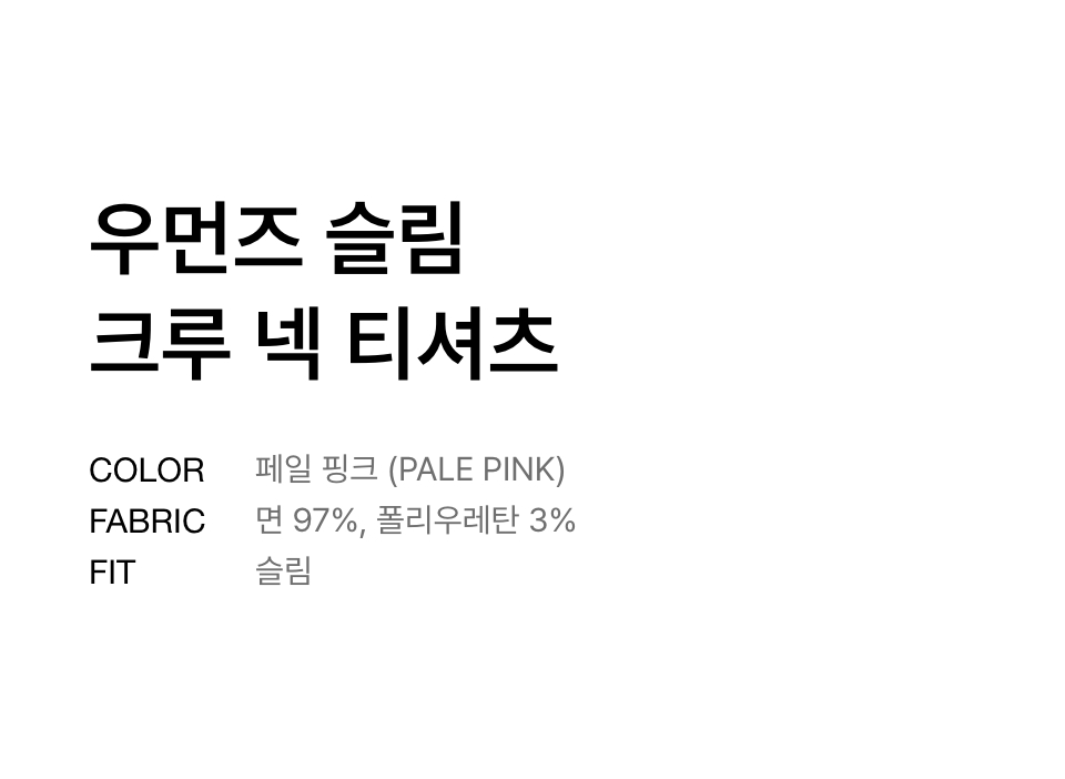 우먼즈 슬림 크루 넥 티셔츠 [페일 핑크]