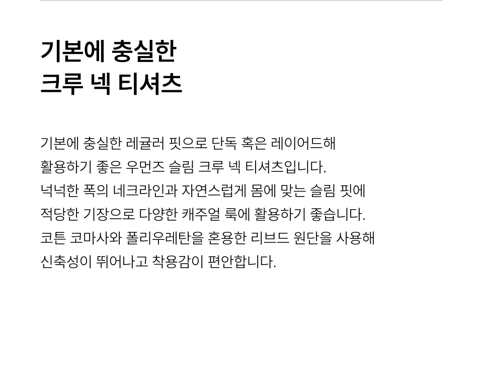 우먼즈 슬림 크루 넥 티셔츠 [블랙]