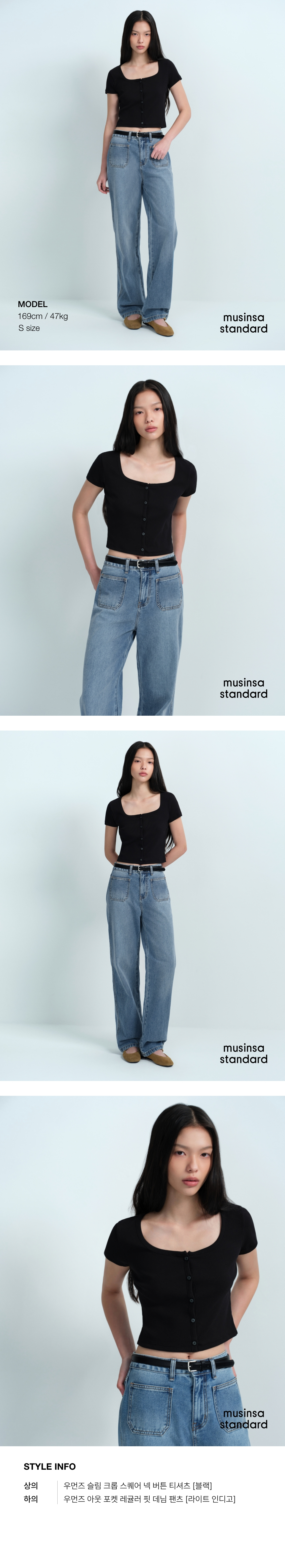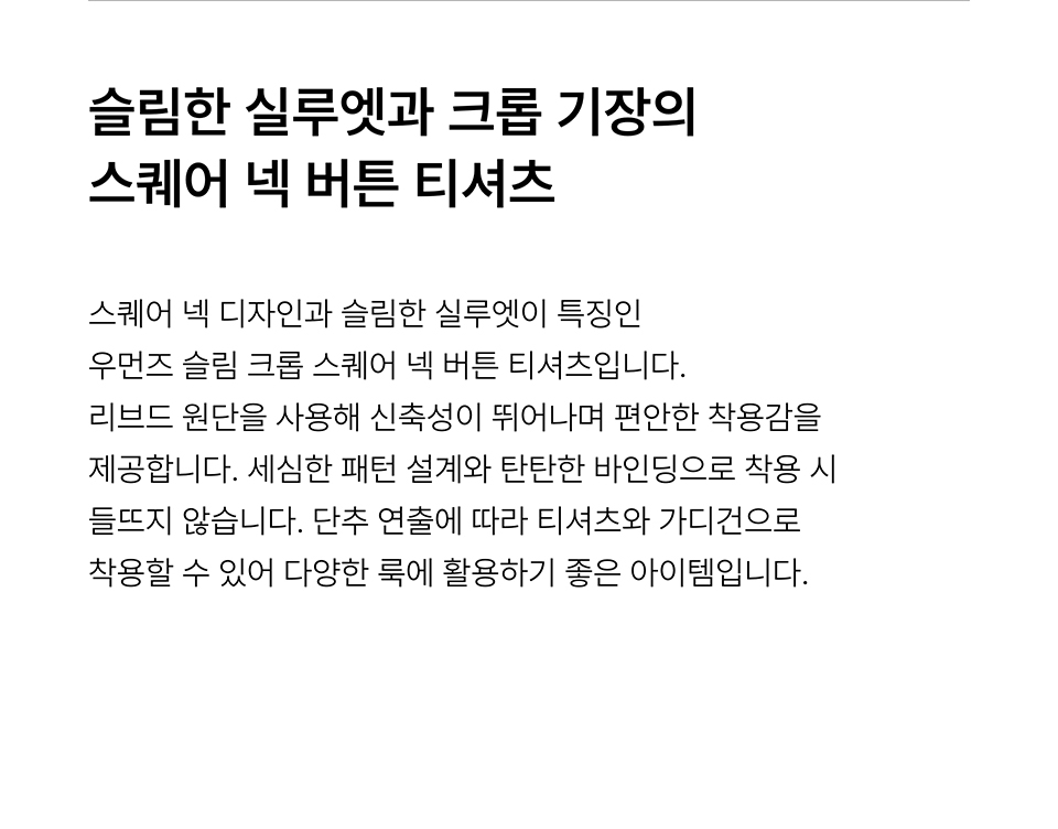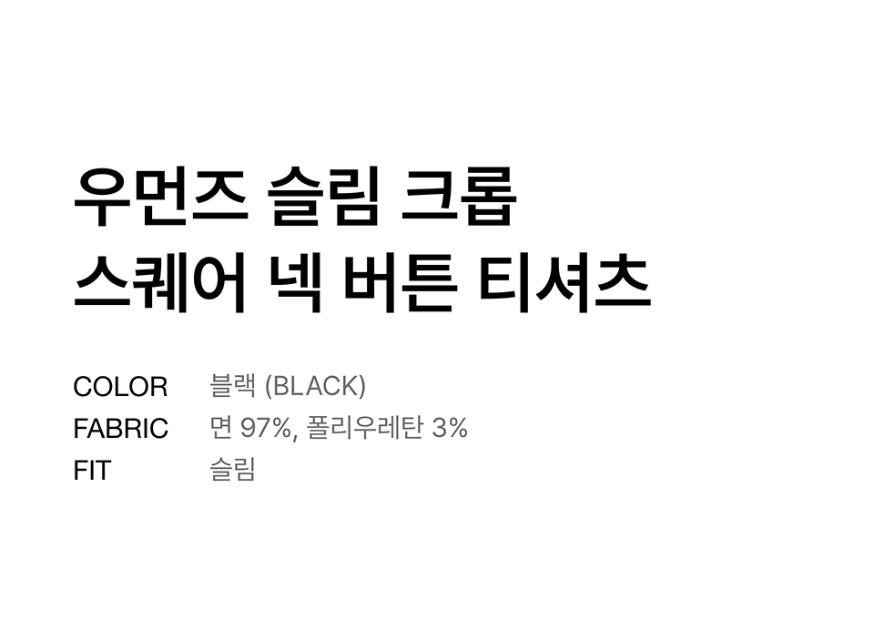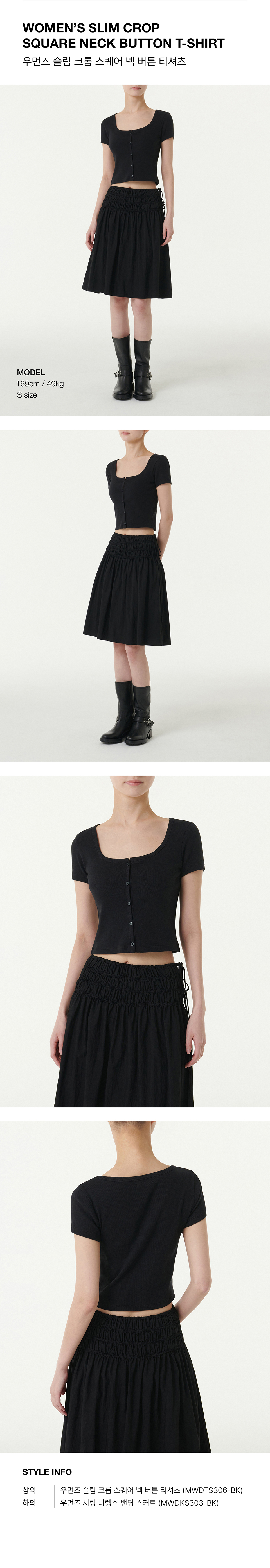 우먼즈 슬림 크롭 스퀘어 넥 버튼 티셔츠 [블랙]