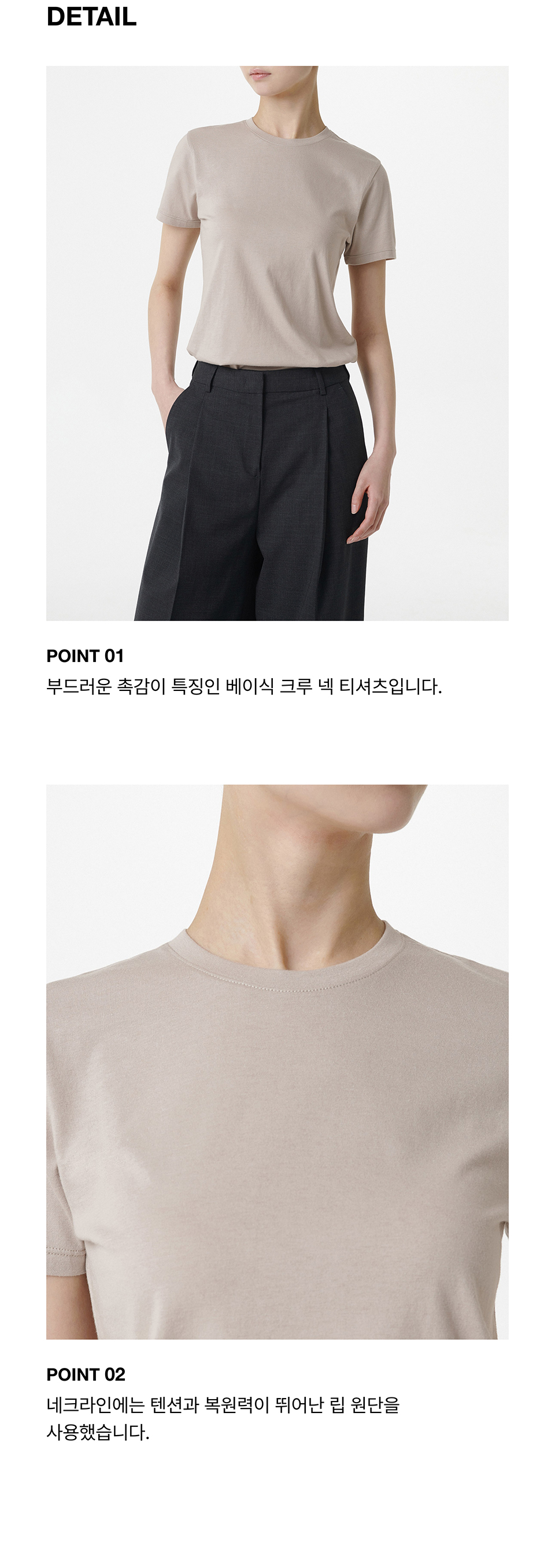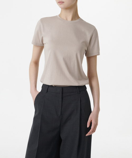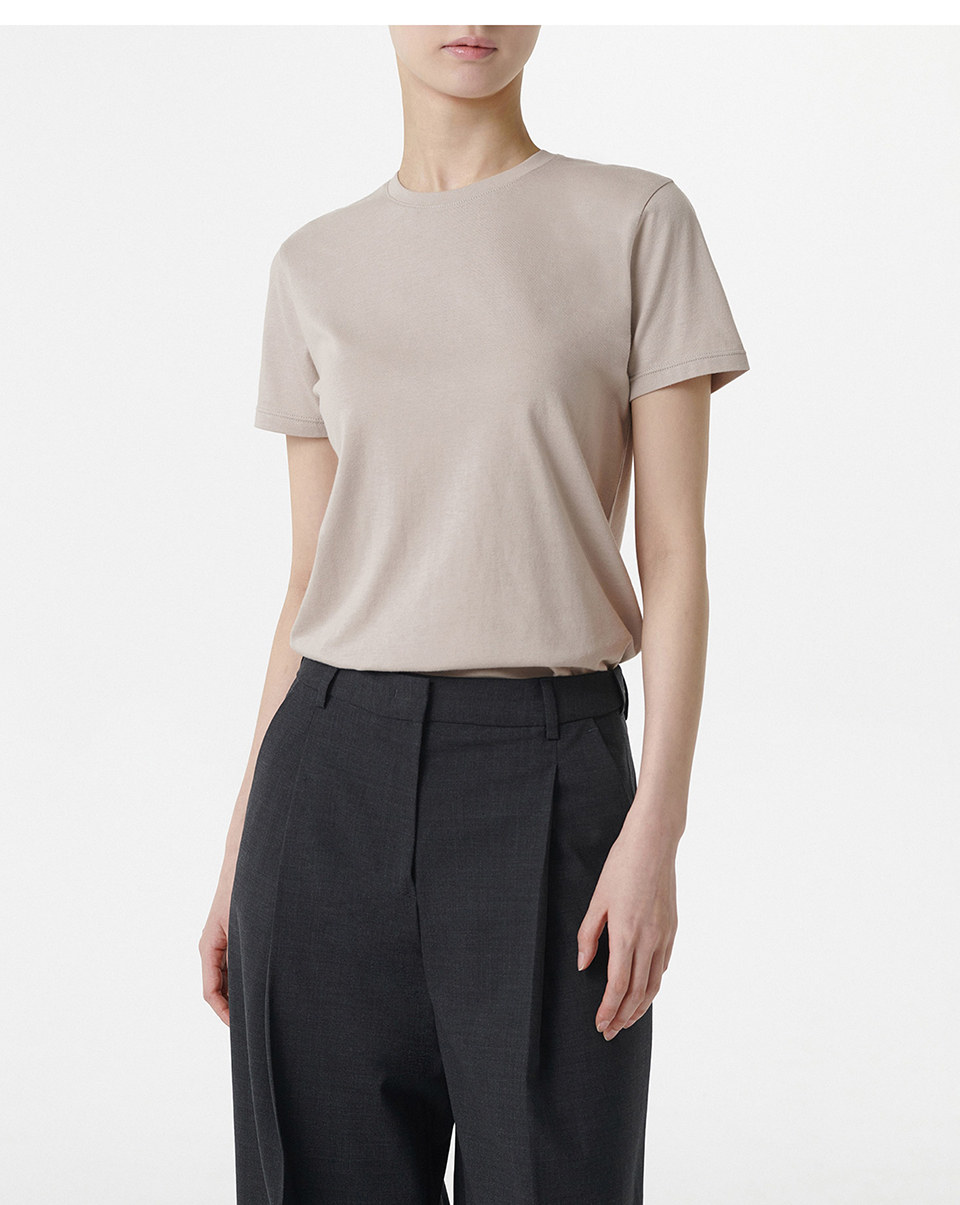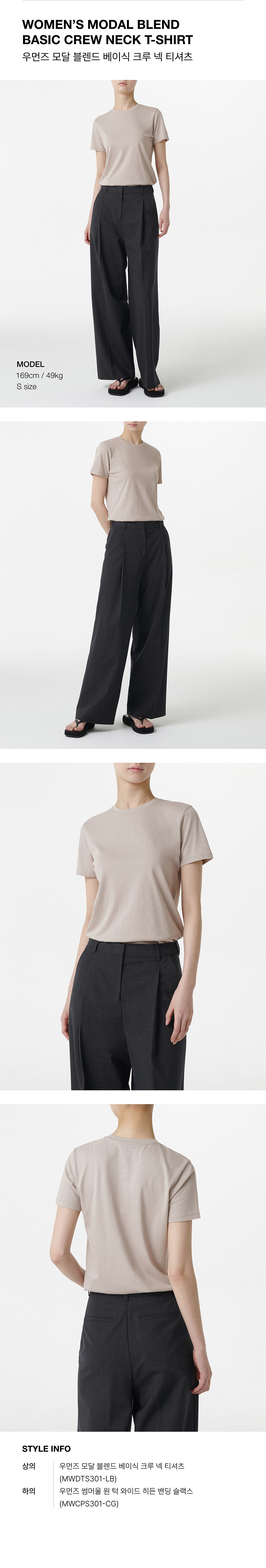 우먼즈 모달 블렌드 베이식 크루 넥 티셔츠 [라이트 베이지]