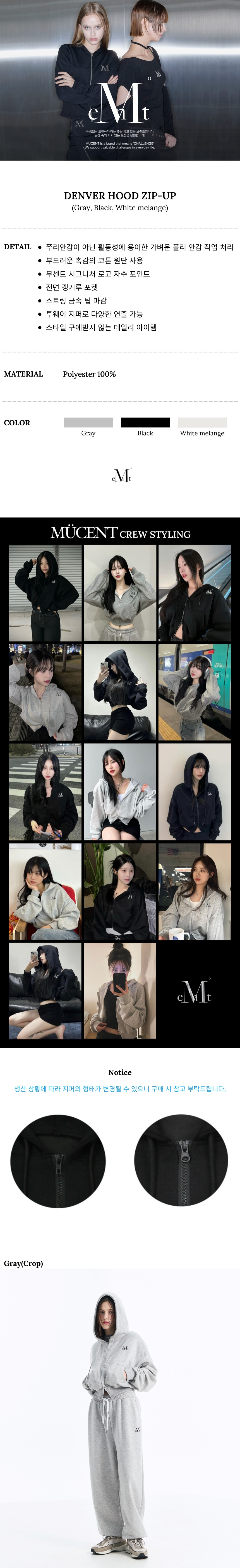 덴버 투웨이 후드 집업 (블랙, 그레이, 화이트 멜란지)