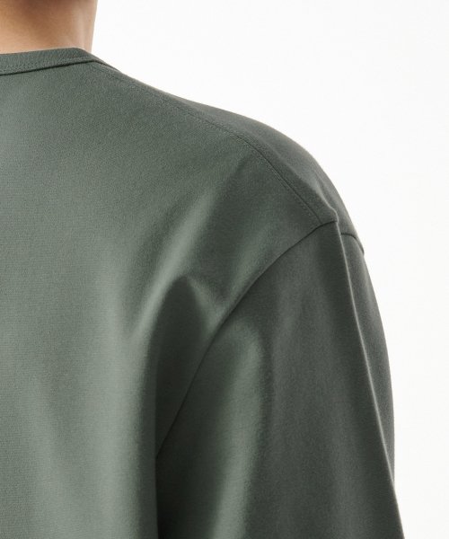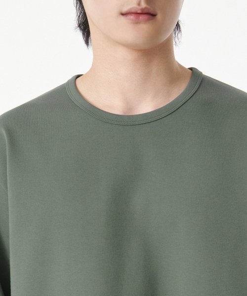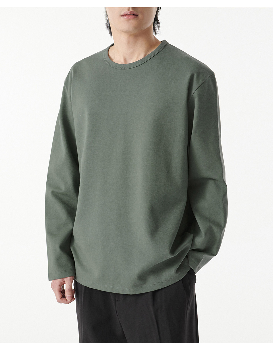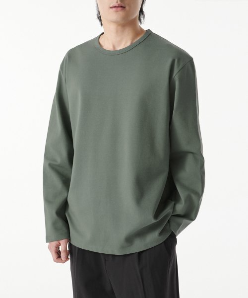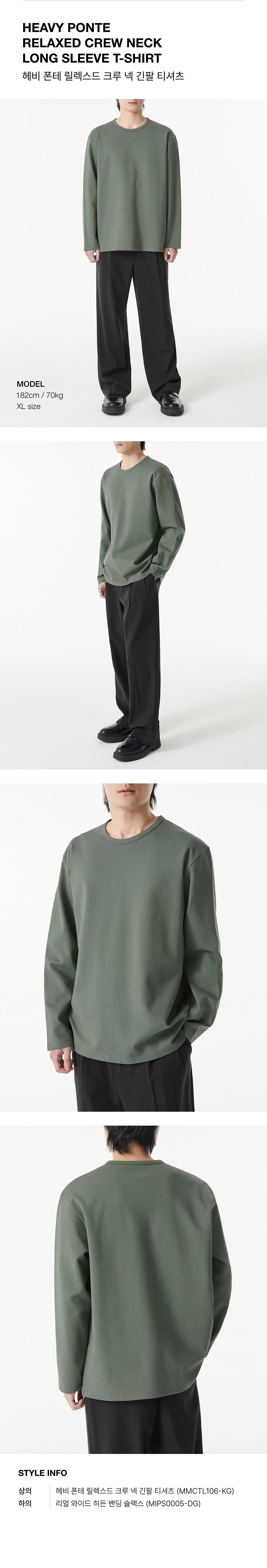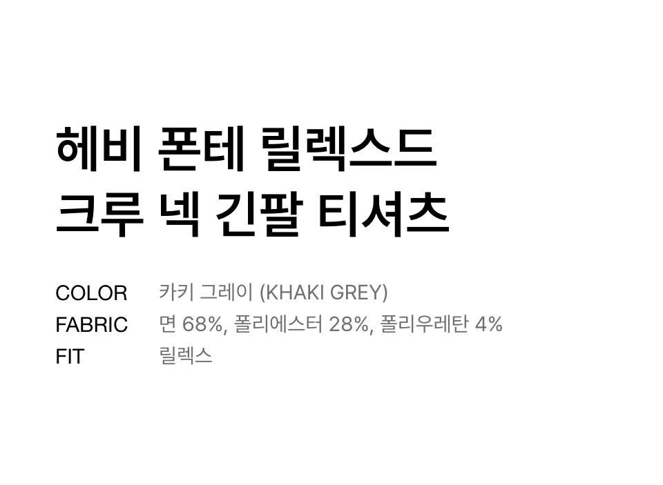 헤비 폰테 릴렉스드 크루 넥 긴소매 티셔츠 [카키 그레이]