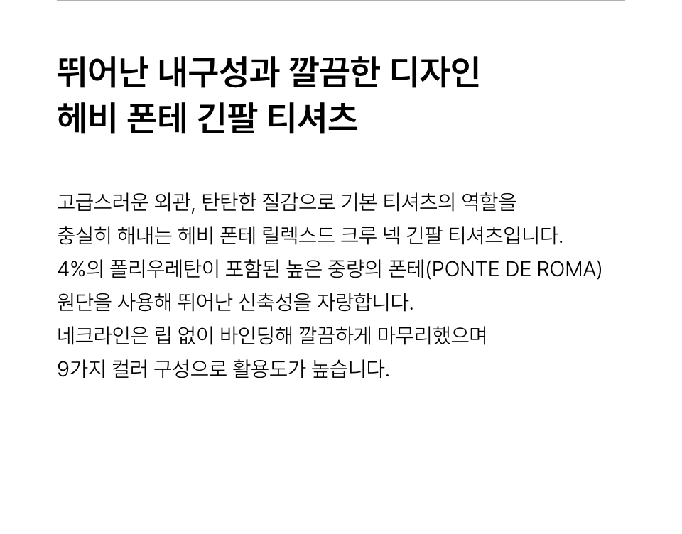 헤비 폰테 릴렉스드 크루 넥 긴소매 티셔츠 [블랙]