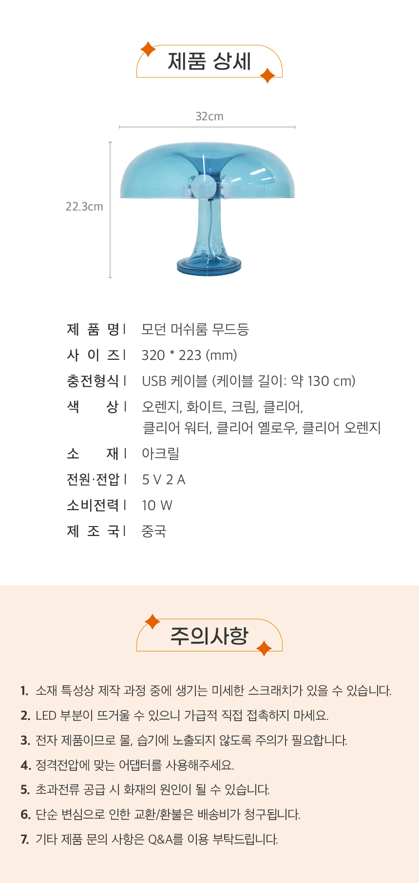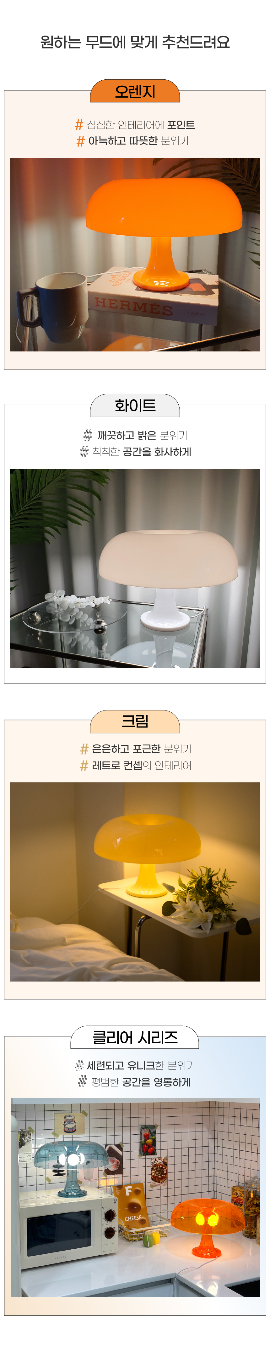 미드센츄리 모던 머쉬룸 무드등 조명 ( 7colors )